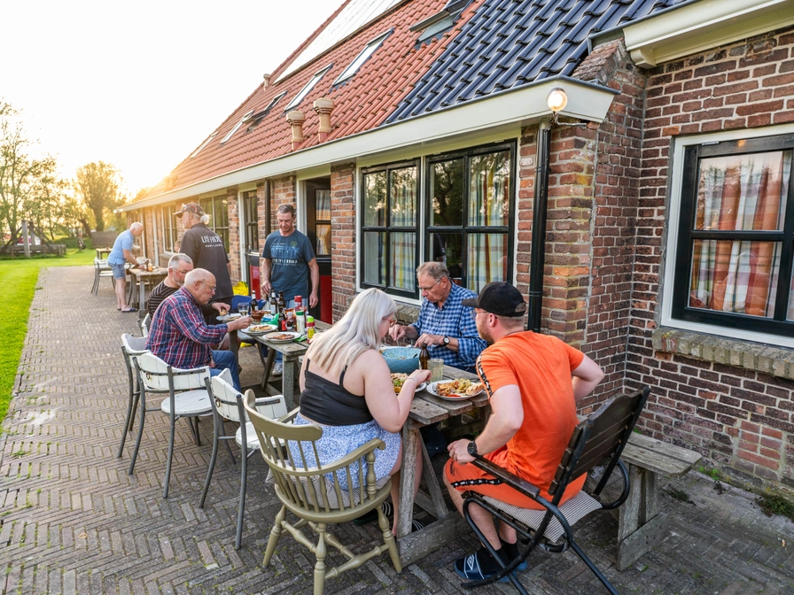 De Koevoet hat einen eigenen Hafen mit Liegeplätzen für Gäste. In der Cafeteria im ehemaligen Heuboden können Sie am großen Kamin einen Drink genießen und eine einfache Mahlzeit oder ein leckeres (Fleisch- oder Käse-) Fondue genießen. Am Hafen ist eine gemütliche Terrasse. An der Rezeption befindet sich eine kleine Bibliothek und ein Spieleschrank. Außerdem vermietet Koevoet Segelboote vom Typ Polyvalk. Die Segelschule Neptunus befindet sich im Nachbardorf Idskenhuizen. Kinder können hier eine Segel- und Surfwoche erleben. Auf der Koevorde, in Sichtweite von De Koevoet, werden viele Unterrichtsstunden erteilt. Sie können die Gegend mit dem Boot, dem Auto, dem Fahrrad oder zu Fuß erkunden. Auch in dieser Gegend gibt es unzählige Freizeitmöglichkeiten. Restaurant im ehemaligen Heuboden, Terrasse am Hafen. Die einzigartige Kombination aus Apartmentvermietung, Camping, Hafen und Imbiss macht es zum idealen Treffpunkt für Familienfeiern, Partys, Betriebsausflüge, Seminare etc.