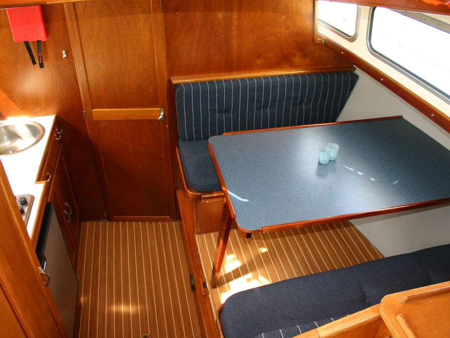 Dieses Motorboot segelt hervorragend und bietet viel Wohnraum für vier Personen. Das Boot ist komfortabel und gemütlich eingerichtet und somit ideal für eine Familie oder zwei Paare. Layout: Im vorderen Bereich befindet sich eine geschlossene Doppelkabine mit Stauraum. Die geräumige Küche ist mit einem 4-Plattenherd, Kühlschrank und einem kompletten Inventar für 6 Personen ausgestattet. Die Dinette kann in eine zusätzliche Doppelkoje umgebaut werden. Der Salon verfügt über eine gemütliche Sitzecke und den Steuerstand. Die Achterkabine verfügt über eine zweite Doppelkabine mit zusätzlichem Waschbecken für mehr Privatsphäre sowie zusätzlichen Stauraum. Das Boot verfügt außerdem über eine Dusche, eine elektrische Toilette und ein Waschbecken. Draußen können Sie das Sonnendeck mit zweitem Steuerstand, GPS, Solarpanel, XL-Cabrioverdeck, Liegestühlen, Tisch und einer Badeplattform mit Badeleiter genießen. Sie haben noch keine Segelerfahrung? Dann ist eine Segeleinweisung zwingend erforderlich.