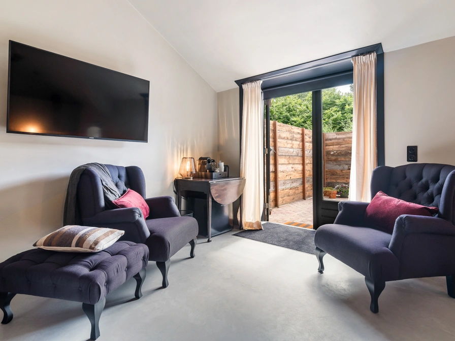 Dieses charmante Zimmer befindet sich im Erdgeschoss des B&B. Es ist geräumig und verfügt über ein luxuriöses Frieschen Bedden Boxspringbett (180 x 210 cm) und eine gemütliche Sitzecke. Das Badezimmer verfügt über eine Dusche, ein WC und zwei Waschbecken, eines davon barrierefrei. Durch die Glastüren gelangen Sie auf Ihre private Terrasse, die zum Sonnenbaden einlädt. Um ein Zimmer in diesem B&B zu buchen, wenden Sie sich bitte direkt an den Eigentümer.