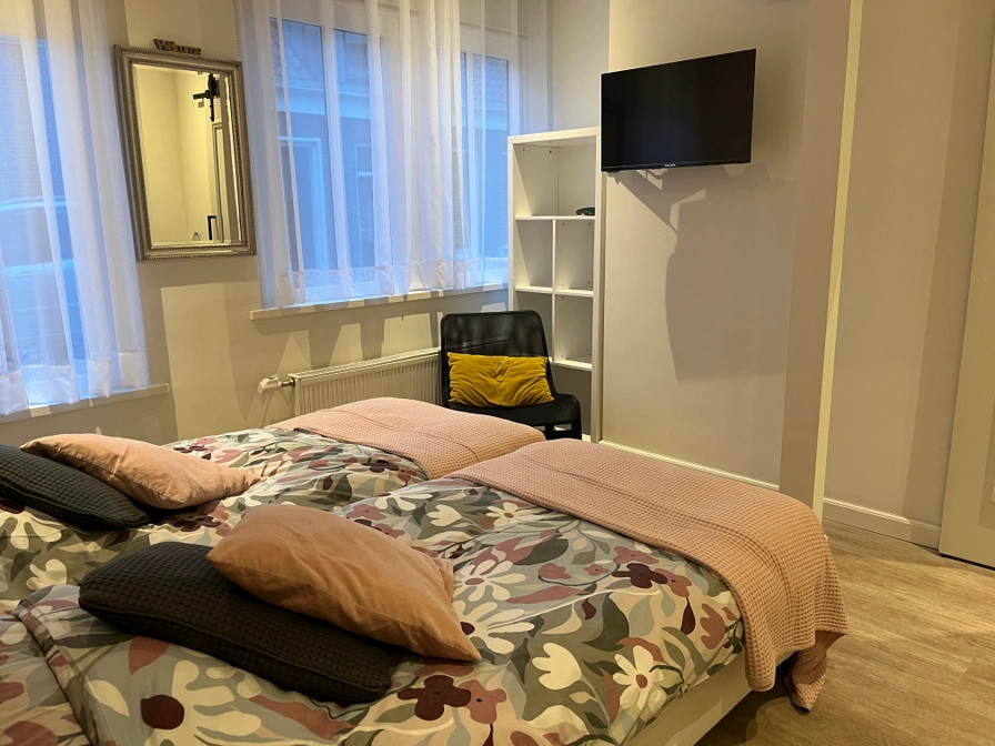 In diesem schönen Gebäude, direkt hinter dem Stadtkanal, am Rande des Zentrums von Sneek, finden Sie diese schöne Bed&Breakfast-Wohnung im Erdgeschoss. Das Zimmer ist neu gebaut und geschmackvoll eingerichtet. Das Zimmer verfügt über ein Doppelbett oder 2 Einzelbetten und ein Badezimmer mit Dusche, Waschbecken und Toilette. Draußen vor dem Haus können Sie Ihre Tasse Kaffee oder ein Glas Wein genießen (in den Merkmalen als Balkon erwähnt, da es sich um einen kleinen Teil des Hauses handelt). Wenn Sie mit einer 3./4. oder 5. Person übernachten möchten, fragen Sie nach den Möglichkeiten, die gesamte Etage mit Küchenzeile und "Wohnzimmer" zu mieten.