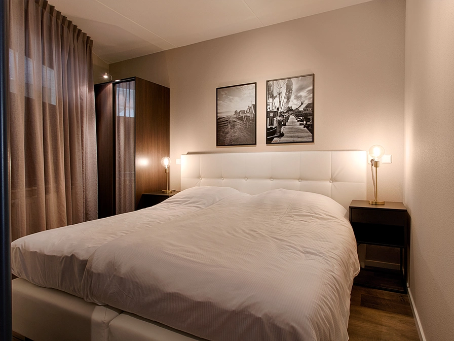 Sie finden diese schönen Apartments direkt am Strand und am IJsselmeer. Die Wohnungen sind für vier Personen geeignet und verfügen über zwei Schlafzimmer und ein Badezimmer mit Dusche, Badewanne und Doppelwaschbecken. Die Toilette ist separat. Der offene Wohnbereich ist gemütlich und verfügt über eine Sitzecke (mit fantastischem Blick über das IJsselmeer!), einen Essbereich und eine Küche. Die Küche ist komplett ausgestattet, inklusive Geschirrspüler und Mikrowelle. Vom Wohnzimmer aus gelangen Sie auf Ihre eigene Terrasse oder Ihren Balkon. Wohnen Sie in einer Wohnung im ersten Stock oder höher? Dann ist es mit dem Aufzug erreichbar. Zu jeder Wohnung gehört auch ein eigener Parkplatz.