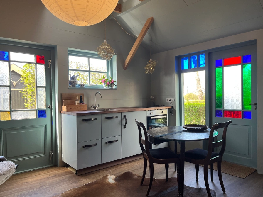 Das Noflike (gemütliche) B&B für zwei Personen liegt neben der Villa auf einem kleinen „Anwesen“. Es ist ein gemütlicher Raum auf der Rückseite des ehemaligen Kutschenhauses mit eigener Gartenterrasse mit Außenkamin und Grill. Eine Minute zu Fuß bis zur Uferpromenade, wo Sie die untergehende Sonne über dem Naturschutzgebiet de Poelen genießen können. Sie schlafen im gemütlichen Boxbett. Das B&B verfügt über eine Küchenzeile mit Kühlschrank, Elektroherd, Backofen und ein schönes Badezimmer mit Dusche. Die Grundlage für das Frühstück (Frühstück) wird von den Eigentümern bereitgestellt und beinhaltet: frische Eier von unseren eigenen Hühnern, Tee, Kaffee, Milch, Butter und hausgemachte Marmelade. Der Frischebäcker ist 200 Meter entfernt. Haustiere sind aufgrund der herumlaufenden Hühner nicht gestattet.
