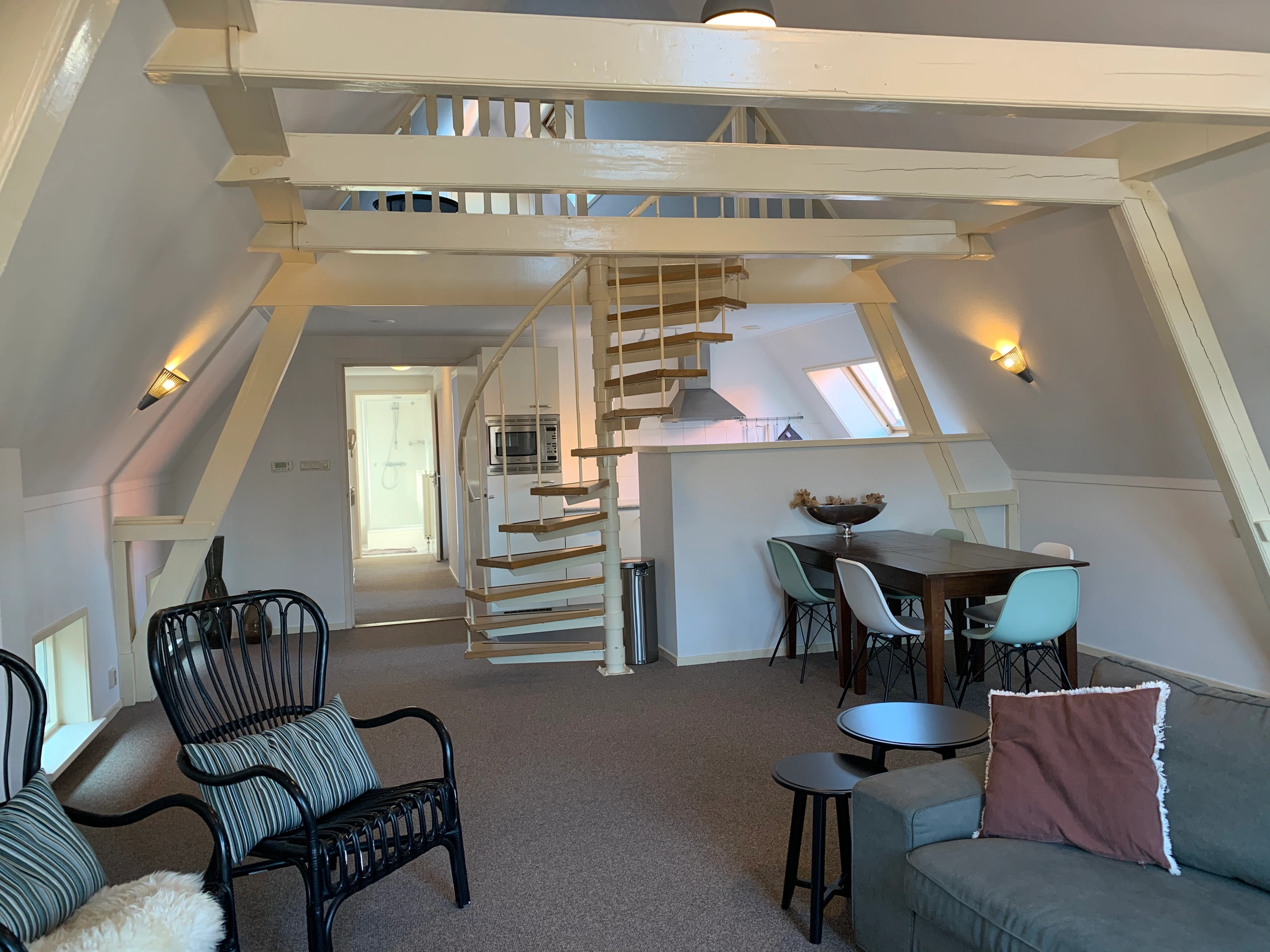 Diese schöne Wohnung befindet sich im zweiten Stock eines ehemaligen Lagerhauses im Zentrum von Sneek. Wenn Sie diese Wohnung betreten, werden Sie den Raum bemerken, denn die Wohnung befindet sich im First des Lagerhauses, Sie haben überall hohe Decken mit schönen alten Balken. Es gibt zwei Schlafzimmer in der Wohnung, beide haben ein Doppel-Boxspringbett. Die Wohnung hat auch einen Schlafboden, der für 1 Person geeignet ist. Das Badezimmer ist mit Dusche, WC, Waschbecken und Pflegeprodukten sowie einem Fön ausgestattet. Das Wohnzimmer und die Küche sind geräumig, mit einem bequemen Sofa, einem gemütlichen Essbereich und einer kompletten Küche mit Geschirrspüler und Backofen! Die Wohnung hat auch eine Waschküche mit ua einer Waschmaschine. Im Dachfirst der Wohnung befindet sich ein Dachboden, wo Sie sich mit einem Buch entspannen können, aber auch eine 5. Person kann hier übernachten. Für Fahrräder steht ein separater Fahrradschuppen zur Verfügung.