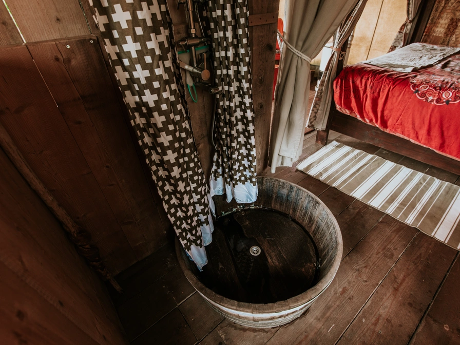 Unser Tiny House und unsere Zelte stehen im Gras. Vielleicht sind Sie ein erfahrener Camper, aber wir sagen es trotzdem: Wegen des Taus auf dem Rasen am frühen Morgen sind Stiefel oder Clogs sinnvoll mitzunehmen – und etwas gegen Mücken, wenn Sie abends nach draußen wollen. sitzen. Wir senden Ihnen eine praktische App mit vielen Informationen über Kampari und die Umgebung. Dort können Sie bereits verschiedene Optionen buchen, wie zum Beispiel den Whirlpool.