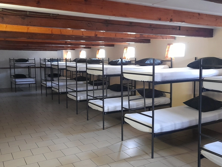 Diese Gruppenunterkunft ist für maximal 40 Personen geeignet. Die Unterkunft besteht aus einem großen Wohnzimmer mit angrenzender Küche. Der Schlafbereich ist im alten Bauernhaus untergebracht, das aus zwei großen Schlafsälen mit je 20 Betten besteht. Im Nebengebäude befinden sich die Toiletten, die nur von den Gästen der Gruppenunterkunft genutzt werden. Die Duschen finden Sie auf dem Campingplatz, die Sie sich mit den anderen Campinggästen teilen.