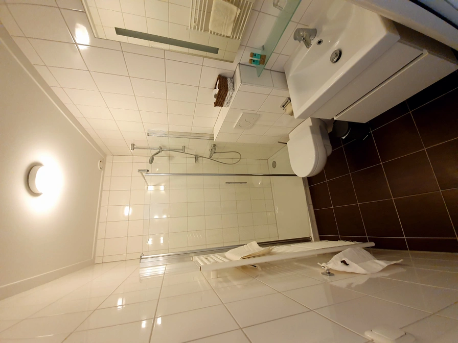 Schöne geräumige Eckzimmer an der Vorder- und Rückseite des Hotels. Das Hotelzimmer verfügt über ein bequemes Boxspringbett und eine Sitzecke mit Flachbildfernseher. Das Zimmer hat eine eigene kleine Küche mit komplettem Inventar. Das Zimmer hat auch ein geräumiges Badezimmer mit Dusche, Waschbecken und Toilette.