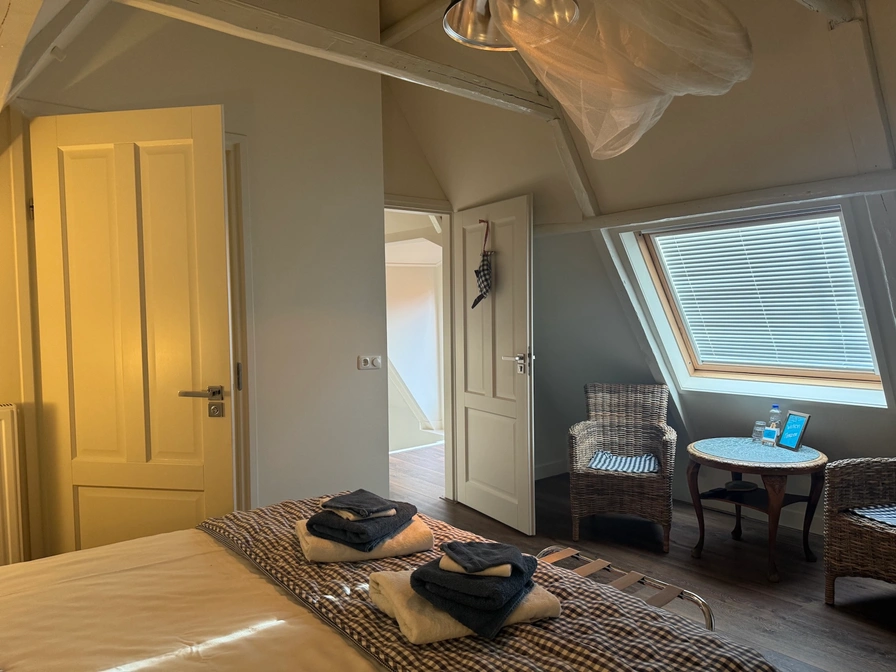 B&B De Thuiskamer ist ein charmantes und stimmungsvolles Bed & Breakfast im Herzen von Grou, untergebracht im ältesten Haus des Dorfes aus dem Jahr 1654. Dieses einzigartige, unter Denkmalschutz stehende B&B verbindet historischen Charme mit modernem Komfort. Mit einem gemütlichen Wohnzimmer, einer luxuriösen Küche, zwei komfortablen Schlafzimmern mit eigenem Bad und einem gemütlichen Innenhof ist es der ideale Ort für Ruhesuchende, Wassersportler und alle, die Friesland entdecken möchten.