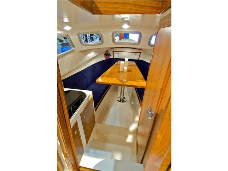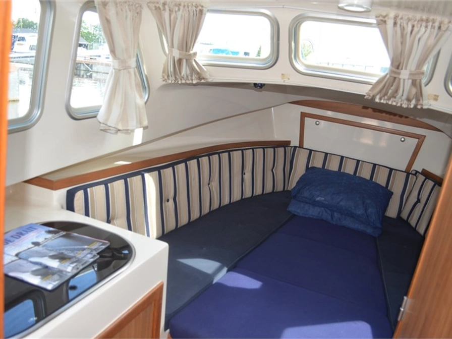 Die Drachster Sloep ist das bekannte Schaluppenmodell von De Drait Yachts. Dieses Boot ist die Sloep Cabin. Das Boot ist für zwei Personen für einen Urlaub auf dem Wasser geeignet. Aufgrund der geringen Durchfahrtshöhe können Sie mit diesem Boot sogar die Elf-Städte-Route befahren. Die Aufteilung finden Sie im Grundriss auf den Fotos. Genießen Sie ein romantisches Wochenende auf dem Wasser zu zweit mit unserer Sloep Cabin.