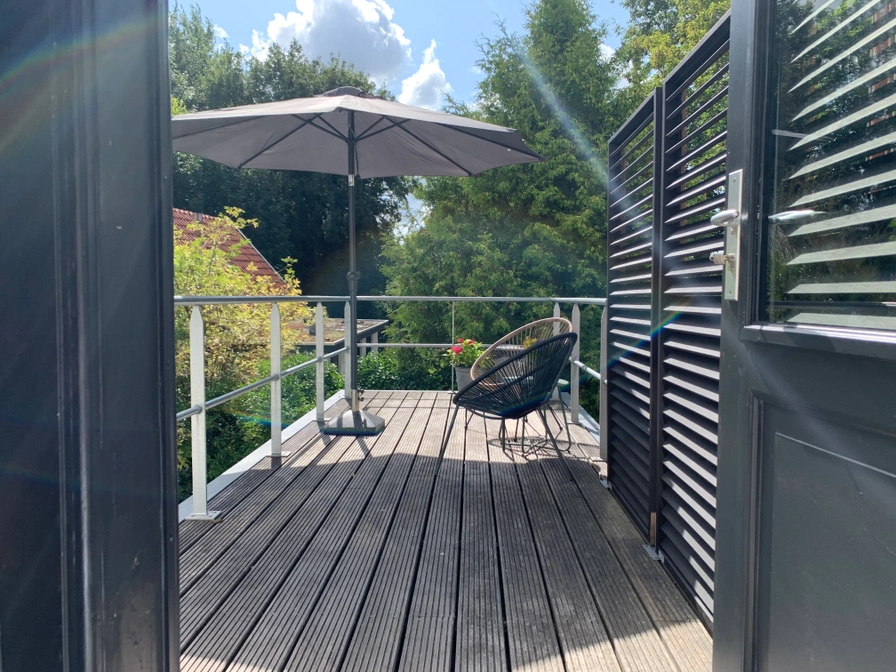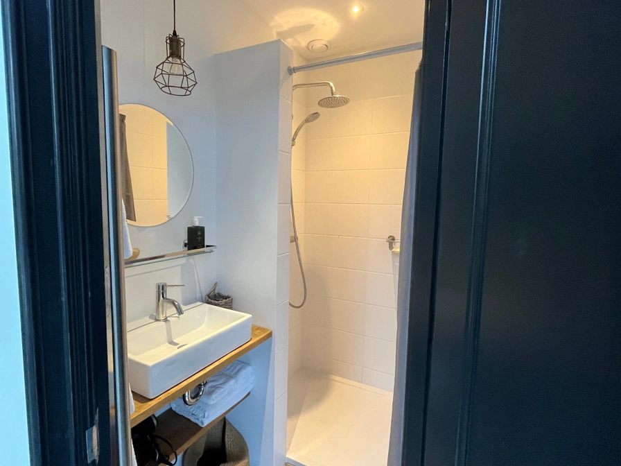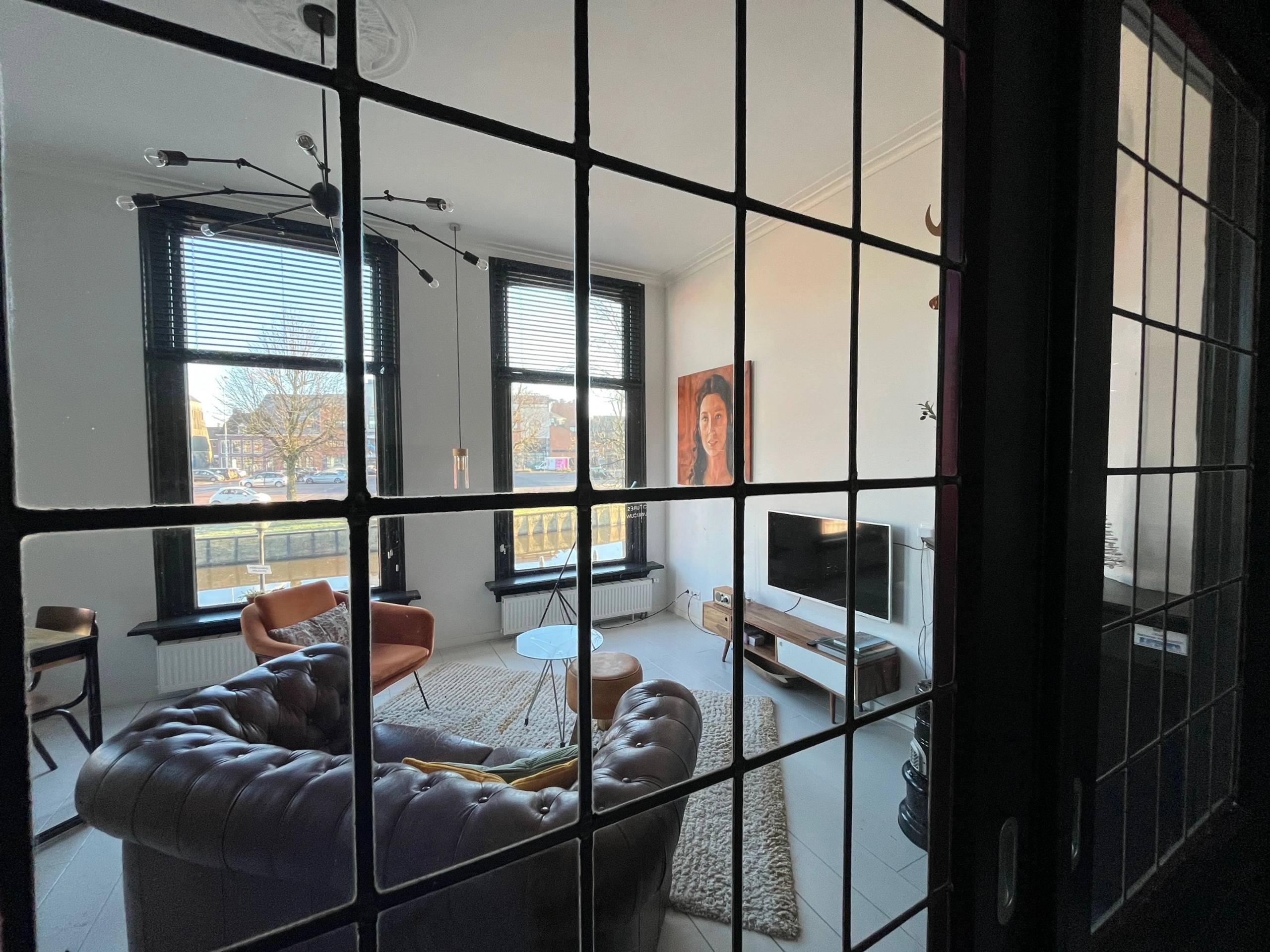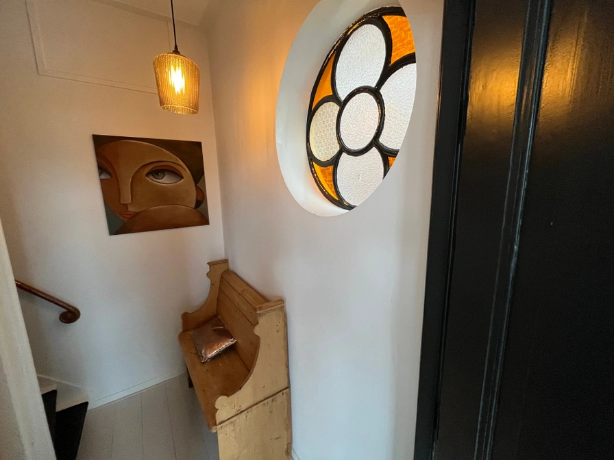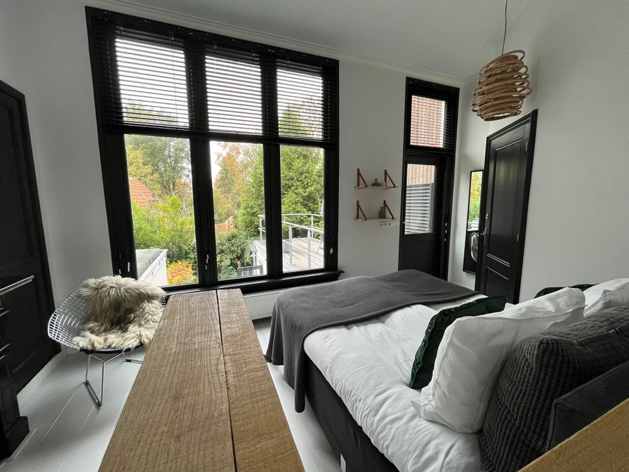 Die luxuriös eingerichtete Etage ist eine Wohnung im ersten Stock und bietet vom Wohn-/Essbereich einen schönen Blick auf den Stadtkanal (Elfsteden). Die Etage ist über die monumentale Treppe zu erreichen. Der Schlafbereich befindet sich im Heckbereich und kann durch die originalen Ensuite-Türen geschlossen werden. Auch die Dachterrasse ist von hier aus zugänglich. Die Etage verfügt über ein luxuriöses Badezimmer mit Regendusche und separatem WC. Eine voll ausgestattete Küche mit Kaffeemaschine, Geschirrspüler, Kühlschrank und Mikrowelle ist vorhanden, die einen längeren Aufenthalt ermöglicht. Die Etage verfügt außerdem über einen modernen Fernseher mit Netflix und (privates) WLAN.