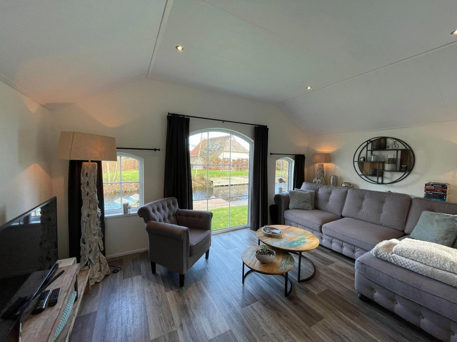 Wenn Sie die Türen dieses Chalets öffnen und den Garten betreten, tauchen Sie sofort in die Natur ein. Das Chalet verfügt über eine moderne offene Küche, die in das Wohn- und Esszimmer übergeht. Die Küche ist gut ausgestattet und das Wohnzimmer ist gemütlich. Dieser Chalettyp verfügt über zwei Schlafzimmer und ein praktisches Badezimmer. Durch die Terrasse auf dem Wasser können Sie in kürzester Zeit an Bord Ihrer (gemieteten) Schaluppe gehen!