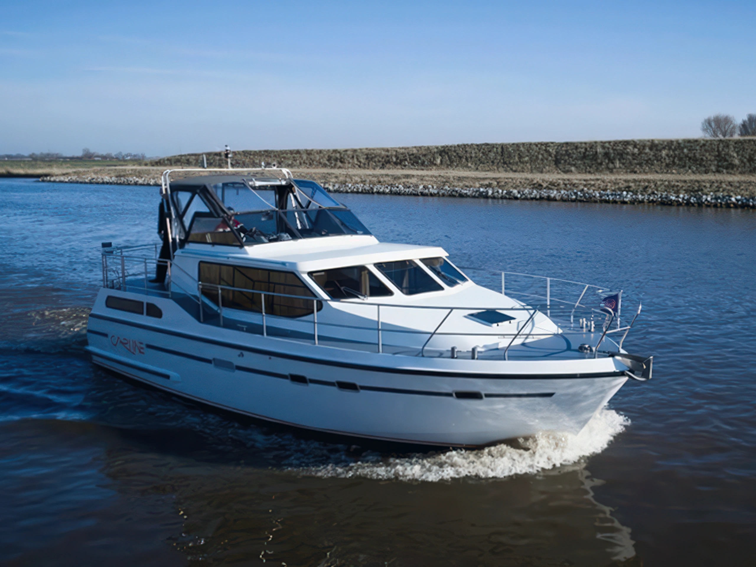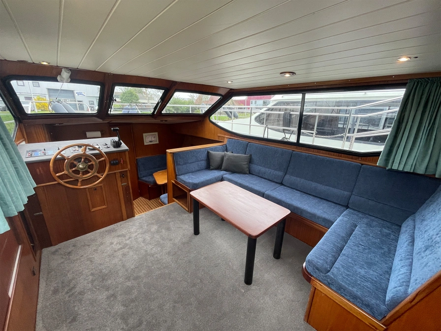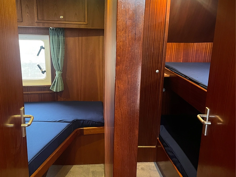 Der Zwermkieps ist ein luxuriöser Carline 1100 Cruiser mit stilvoller Ausstattung. Mit drei geschlossenen Kabinen bietet das Schiff Privatsphäre und Komfort für bis zu 6 Personen. Im hinteren Bereich finden Sie die Kapitänskabine mit einem Doppelbett und eine zweite Kabine mit zwei Einzelbetten. In der Mitte befindet sich der Innensteuerstand und eine gemütliche Sitzecke. Im vorderen Bereich befindet sich die Essecke, die in zusätzliche Schlafplätze umgewandelt werden kann, sowie eine voll ausgestattete Küche und eine zweite Toilette. Auf dem geräumigen Achterdeck genießen Sie eine wunderschöne Aussicht über das Wasser.