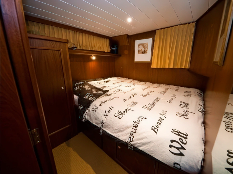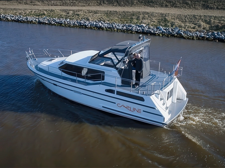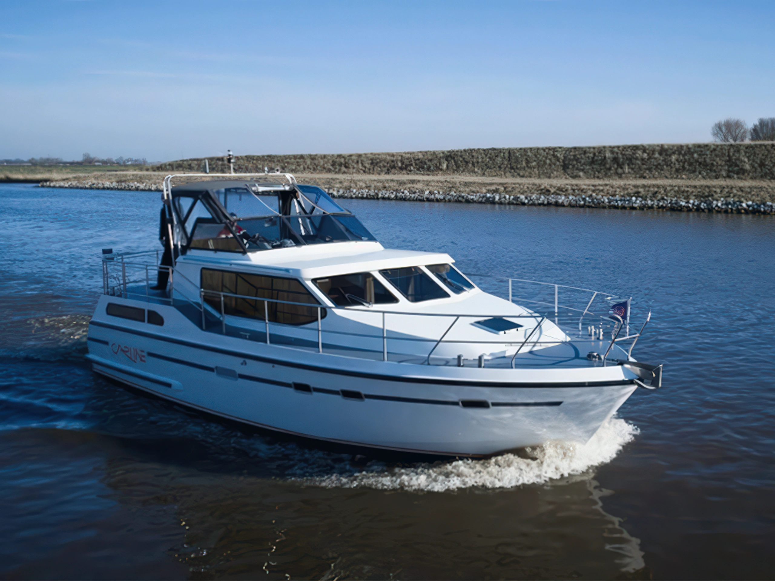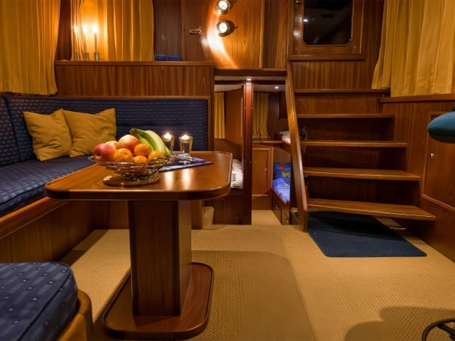 Der Escape ist ein geräumiger Carline 1100 für bis zu acht Personen. Mit drei geschlossenen Kabinen, einer attraktiven Innenausstattung aus Mahagoni und jeglichem Komfort an Bord ist diese Yacht perfekt für eine entspannte Kreuzfahrt. Im hinteren Bereich befinden sich die Kapitänskabine, eine Kabine mit Etagenbetten und ein Badezimmer. In der Mitte befindet sich der Innensteuerstand und Sitzbereich, vorne eine Küche, eine Essecke und eine dritte Kabine. Die Bug- und Heckstrahlruder erleichtern das Segeln.