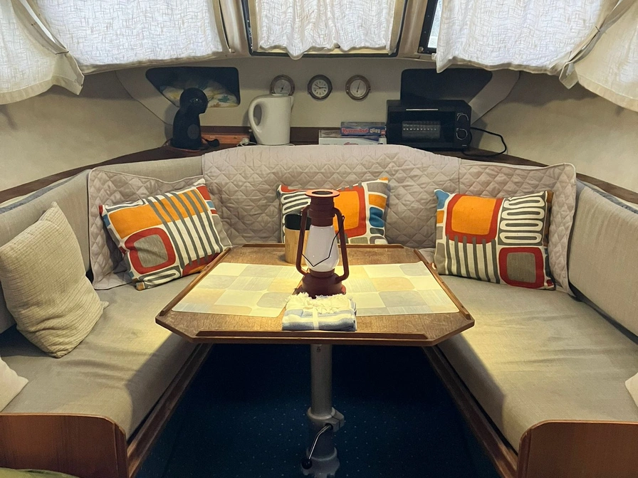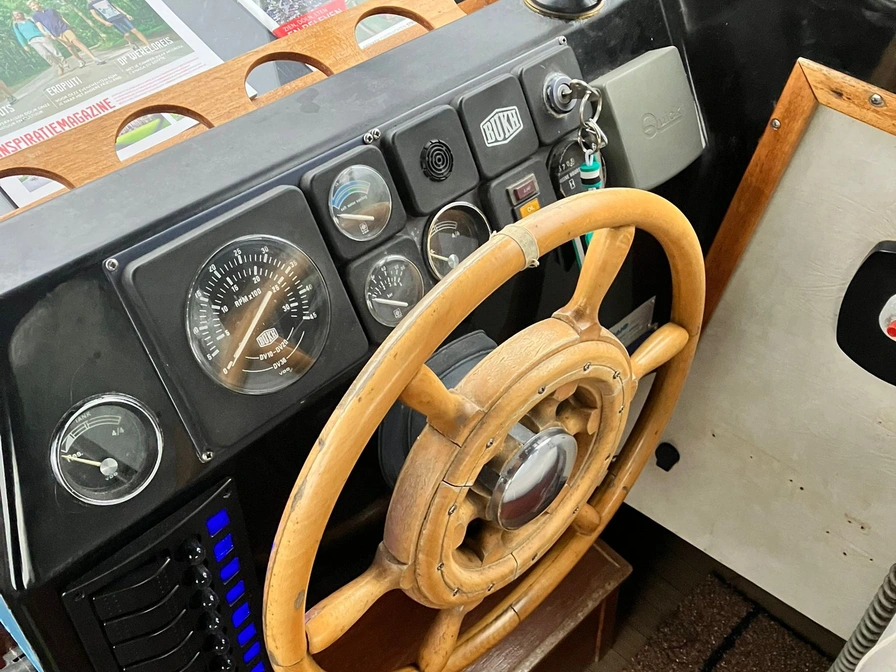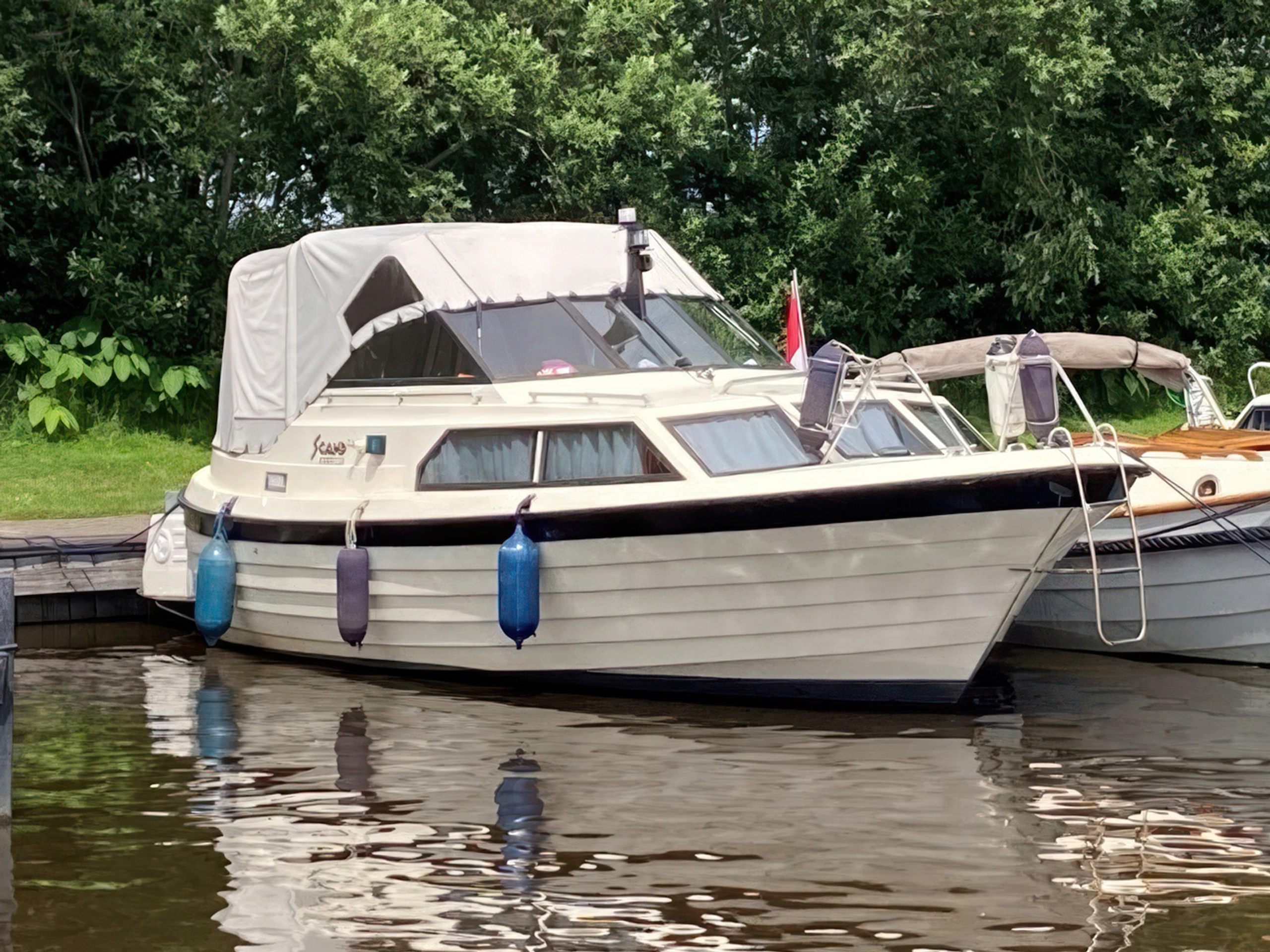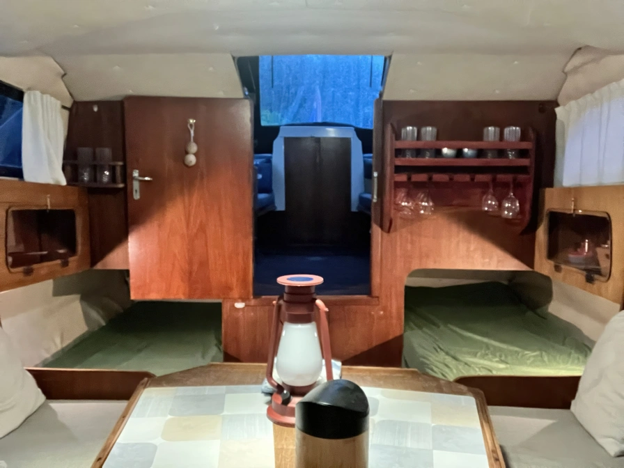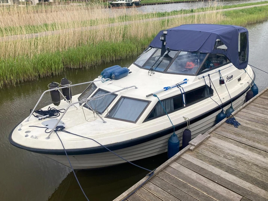 Der Scand 25 ist gut gewartet und perfekt für eine Woche auf dem Wasser mit der Familie oder zu zweit. Durch die praktische Aufteilung bietet es bequem Platz für 4 Gäste, auch 2 Erwachsene mit 3 Kindern können dort bequem übernachten. Das Boot verfügt über ausreichend Stauraum und bietet Annehmlichkeiten wie fließendes Wasser, einen 2-Flammen-Herd mit Backofen, Kühlschrank, Toilette, Echolot und Fischfinder. Das Schiff ist in ausgezeichnetem Zustand und wird von einem kürzlich überprüften Bukh-Motor mit 36 PS angetrieben. An Bord ist eine Karte von Friesland erhältlich.