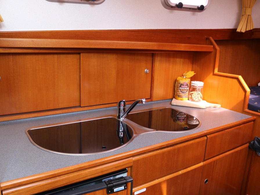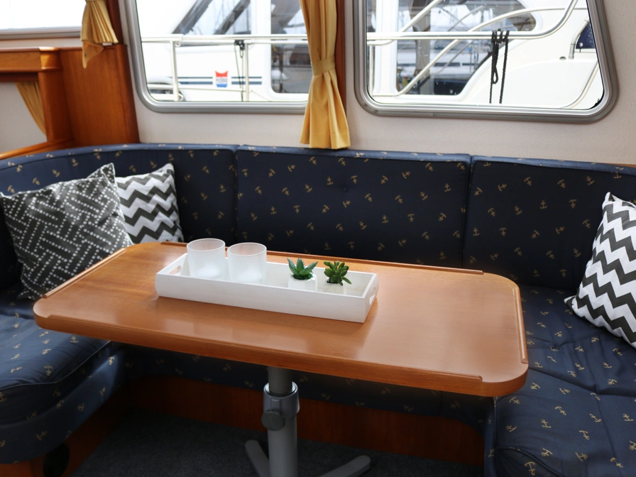 Die Pedro Marin 30 Ilona ist ein klassisches und komfortables Boot mit praktischer Raumaufteilung. Im Inneren erwartet Sie ein gemütlicher Salon mit Sitzecke und einer Essecke, die sich in ein zusätzliches Doppelbett umwandeln lässt. Das Boot verfügt über zwei feste Doppelbetten und ist somit ideal für zwei Paare oder eine Familie mit Kindern. Die Pantry ist mit einem Kühlschrank mit Gefrierfach und allen notwendigen Utensilien für Selbstversorger ausgestattet.