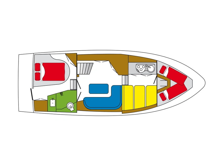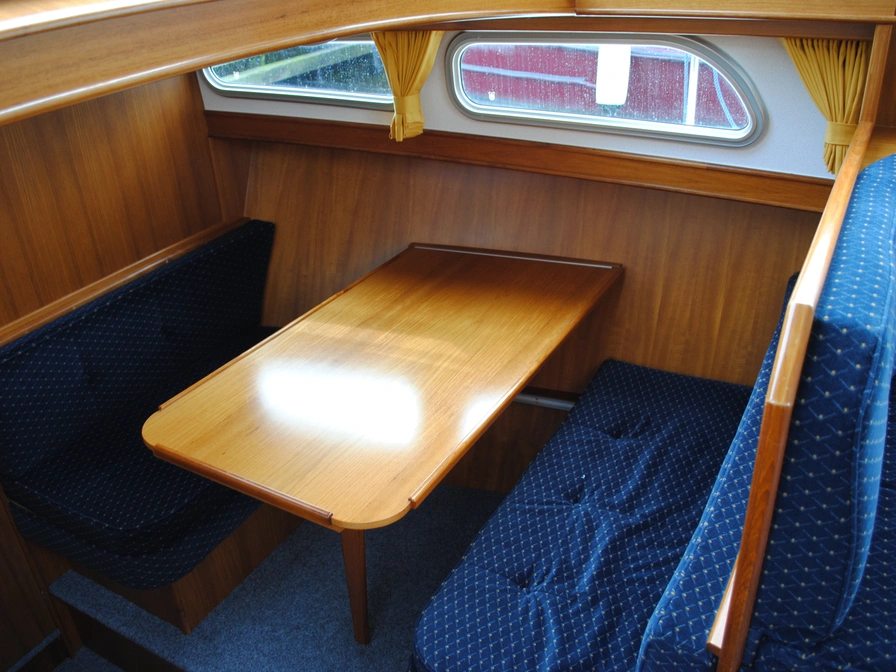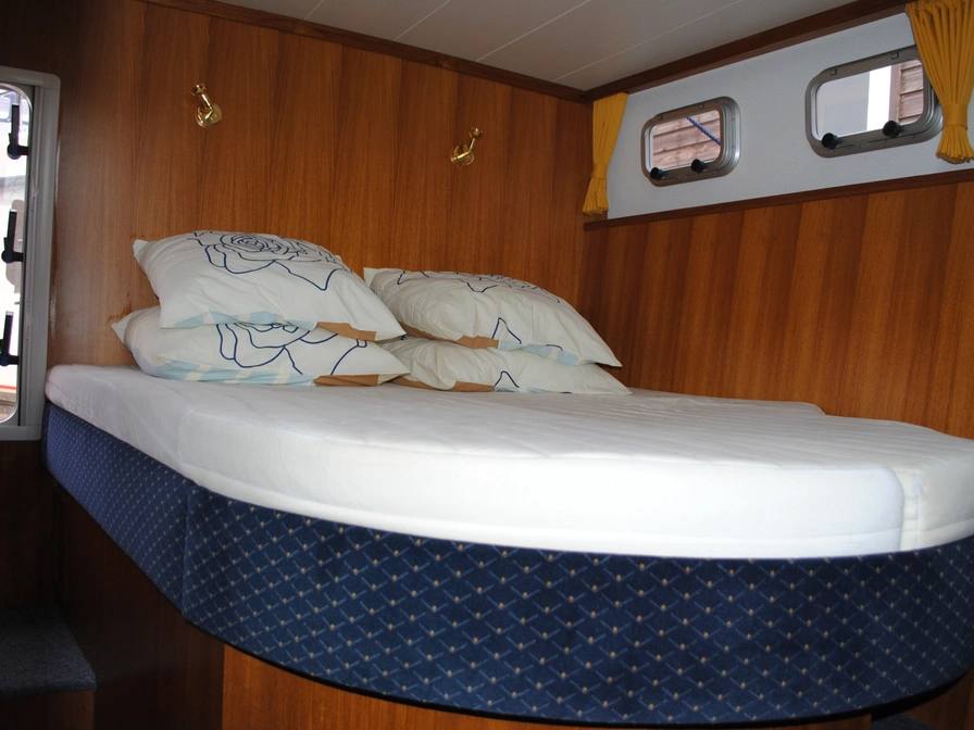 Die Pedro Skiron 35 Kim bietet viel Platz und Komfort für einen entspannten Bootsurlaub. Im Inneren finden Sie ein Doppelbett im Heck, zwei Kojen im Bug und eine Essecke, die sich in ein zusätzliches Bett umwandeln lässt. Der Salon verfügt über eine gemütliche Sitzecke und eine gut ausgestattete Pantry mit Kühlschrank und Gefrierfach. Das Boot ist mit einem Bugstrahlruder ausgestattet, was das Segeln einfach und komfortabel macht. Das Verdeck und das große Achterdeck bieten sechs Personen einen geschützten und geräumigen Bereich zum Entspannen und Genießen des Ausblicks auf das friesische Wasser.