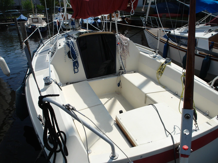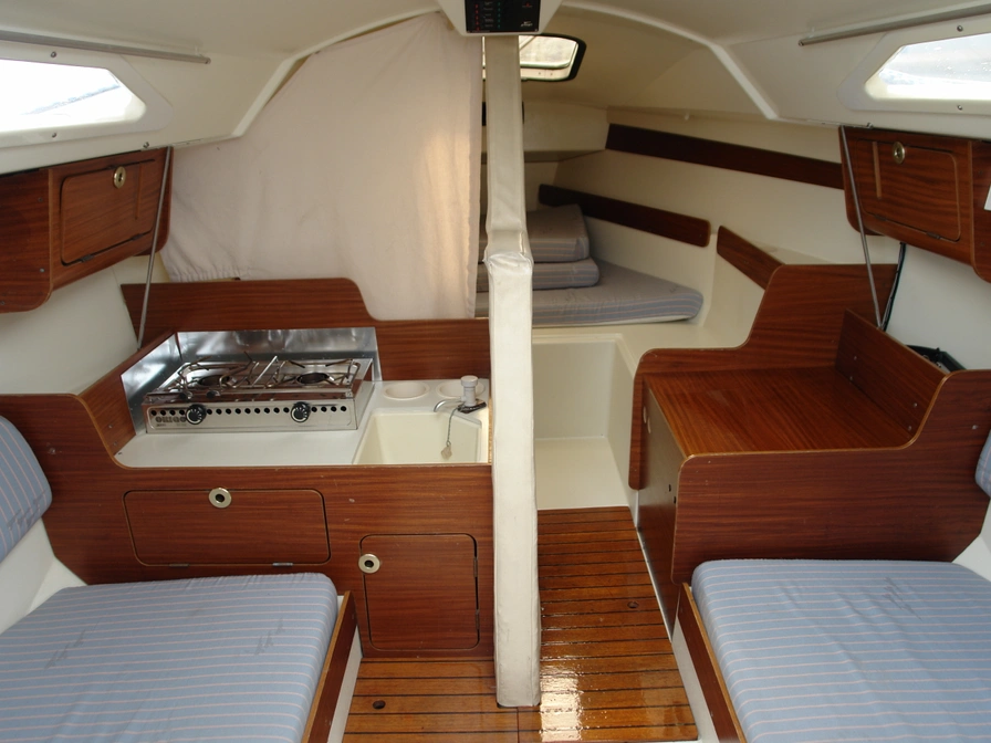 – Abmessungen: L 6,78 x B 2,47 x T 0,90 – Außenbordmotor direkt vom Cockpit aus steuerbar – Segel vom Cockpit aus hissbar – Bordtoilette