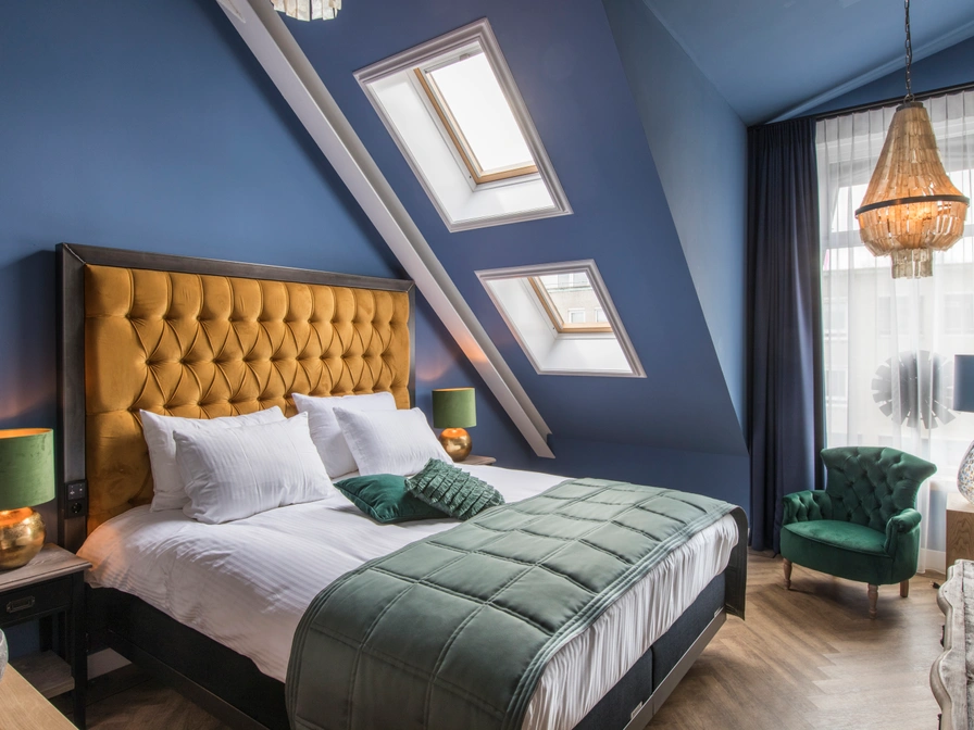 Das Deluxe Zimmer ist ein komfortables und stimmungsvolles Zimmer mit mindestens 25 m² und einem einzigartigen Design, das sich von Zimmer zu Zimmer unterscheidet. Jedes Zimmer verfügt über eine Doppel-Regendusche mit Pflegeprodukten von Marie-Stella-Maris und ein Kingsize-Boxspringbett mit Kaltschaummatratze für einen erholsamen Schlaf. Darüber hinaus gibt es einen Flachbildfernseher mit einem umfangreichen Senderpaket, Kaffee- und Teezubereitungsmöglichkeiten, einen Laptop-Safe, einen Haartrockner und ein nachhaltiges Klimasystem, mit dem Sie die Temperatur selbst regulieren können.