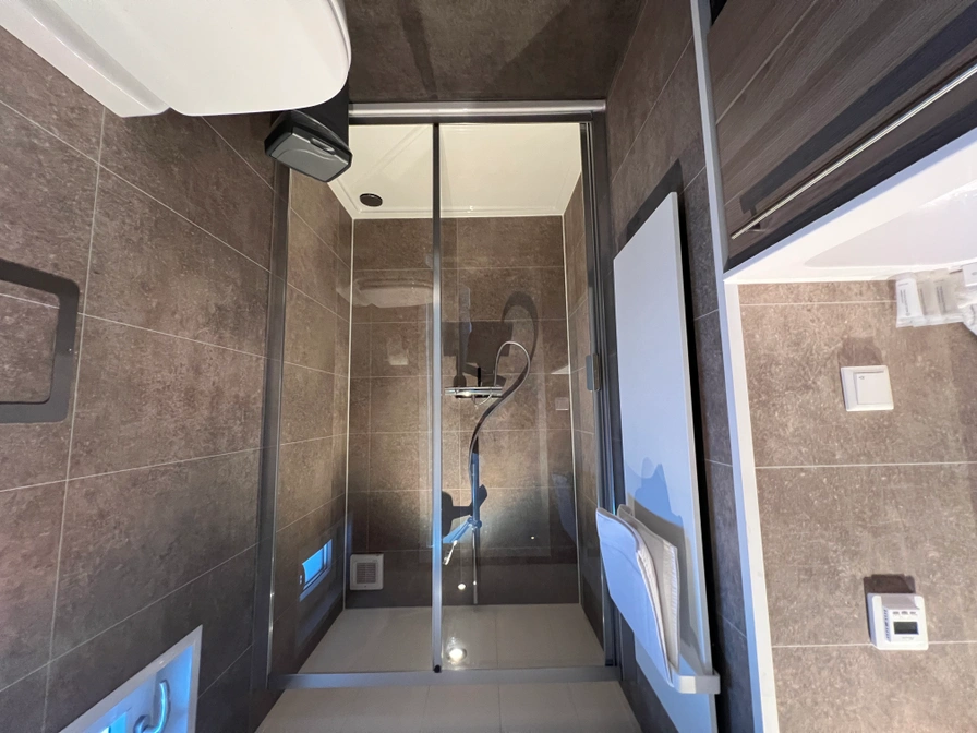 Genießen Sie einen Aufenthalt auf dem Wasser mit dem Komfort eines modernen Ferienhauses. Das Hausboot liegt im Hafen von Lemmer direkt am Wasser. Der helle Innenraum und die geräumige Terrasse vermitteln sofort das Gefühl von Weite und Wassersport in Friesland. Der Wohnbereich bietet eine gemütliche Sitzecke und einen Esstisch für vier Personen. Die Küche ist komplett ausgestattet. Es gibt außerdem zwei Schlafzimmer: eines mit Doppelbett und eines mit Einzelbett. Draußen erwarten Sie eine großzügige Terrasse direkt am Wasser und eine Dachterrasse, auf der Sie den ganzen Tag entspannen können.