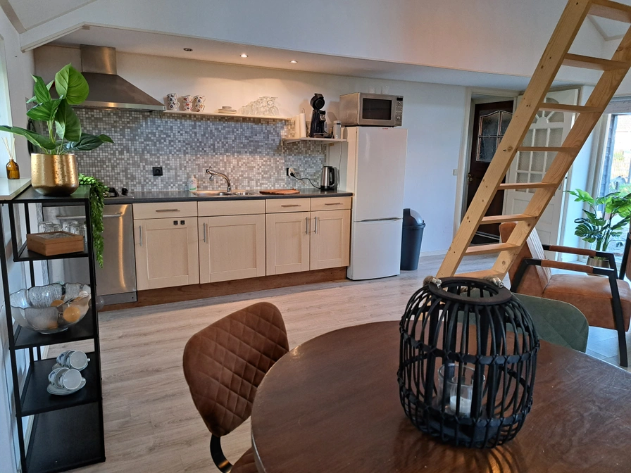Diese Wohnung liegt direkt am Wasser, so dass Sie im Sommer von der Terrasse aus die vorbeifahrenden Boote genießen können! Auf dem Campingplatz haben Sie auch die Möglichkeit, selbst ein Boot zu mieten und die Gegend vom Wasser aus zu erkunden. Die Wohnung verfügt über einen großzügigen Wohnbereich mit Esstisch, Sofa und voll ausgestatteter Küche. Die Küche ist mit einem Geschirrspüler, einem Gasherd und einem großen Kühlschrank mit Gefrierfach ausgestattet. Es gibt zwei Schlafbereiche, das erste Schlafzimmer im Erdgeschoss verfügt über ein bequemes Doppelbett. Das zweite Schlafzimmer liegt im Zwischengeschoss und ist vom Wohnzimmer aus über eine Treppe erreichbar. Hier gibt es zwei Einzelbetten. Außerdem steht Ihnen ein eigenes Badezimmer zur Verfügung, ausgestattet mit Dusche, WC und Waschbecken.