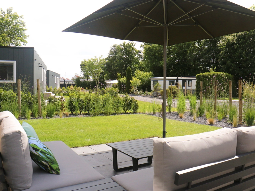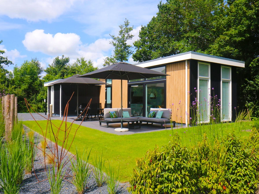Genießen Sie einen wunderbaren Aufenthalt in dieser Ferienhütte mit Klimaanlage. Die Lodge verfügt nicht nur über zwei Schlafzimmer, sondern auch über zwei Badezimmer! Jedes Schlafzimmer verfügt über extra lange Boxspringbetten und jedes über ein eigenes Badezimmer mit Regendusche und Waschbecken. Es gibt eine separate Toilette. Im Garten gibt es auch eine Sauna. Die Nutzung ist optional buchbar. Dieser Garten liegt im Süden/Südwesten, sodass Sie die Sonne genießen können. Der Garten verfügt über ein Loungesofa, Gartenmöbel, Sonnenschirme und einen Weber-Gasgrill. Der private Parkplatz neben der Ferienhütte verfügt über eine Ladestation (Nutzung gegen Gebühr) und es gibt einen abschließbaren Fahrradschuppen. Es gibt einen geräumigen Wohnbereich und eine sehr gut ausgestattete Küche mit allen Annehmlichkeiten. Im Hauswirtschaftsraum finden Sie sogar eine Waschmaschine, einen Trockner und einen separaten Gefrierschrank.