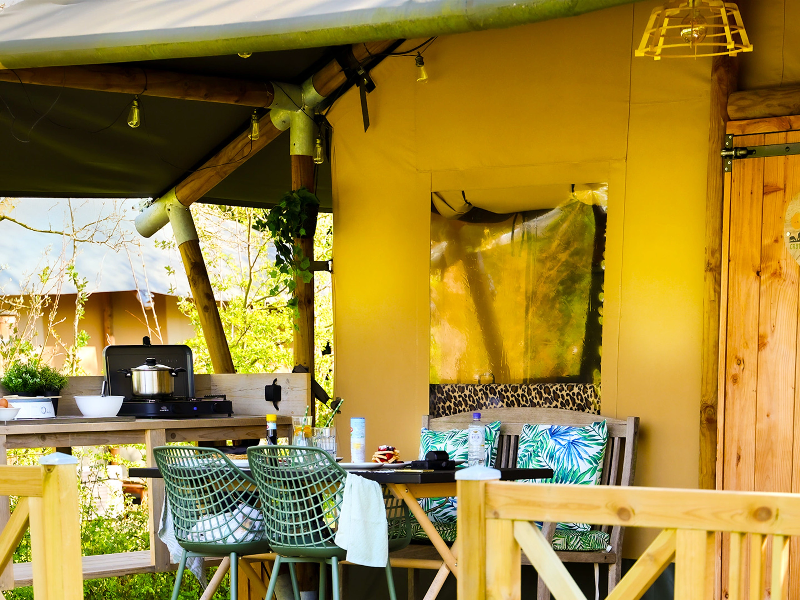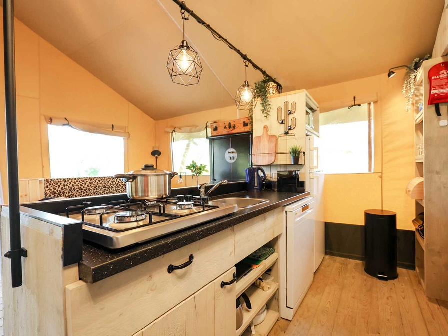 Auf Safari in Friesland? In diesem robusten und attraktiven Safarizelt in Grou ist das möglich. Mit Klimaanlage zum Kühlen oder Heizen. Das Zelt ist für vier Personen geeignet und verfügt über zwei Schlafzimmer. Eines der Zimmer verfügt über ein Doppelbett und das andere über ein Etagenbett. Es gibt ein gemütliches Wohnzimmer mit Ess- und Sitzecke und eine komplette Küche. Diese Küche ist komplett ausgestattet, z. B. mit Geschirrspüler und Nespresso! Sie haben auch ein eigenes Badezimmer mit Dusche, Toilette und Waschbecken. Auf der Veranda gibt es eine zusätzliche Außenküche und bequeme Gartenmöbel. Der private Hinterhof verfügt außerdem über einen Sitzbereich, eine Essgruppe, einen Grill und einen Sandkasten für die Kinder.