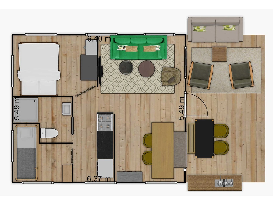 Diese Safari-Lodge in Grou hat einen wunderschönen Platz mit viel Grün links, rechts und dahinter. Im Inneren gibt es eine superleise Klimaanlage zum Kühlen oder Heizen. Es gibt außerdem kostenloses, gesichertes WLAN (20 GB/Tag) und einen Fernseher mit NLZiet und Chromecast zum Streamen über Ihre eigenen Abonnements. Draußen auf der gemütlichen Holzveranda gibt es eine zusätzliche Außenküche mit Gasherd und Pfannkuchenmaschine. Im geschützten Hinterhof gibt es einen Grill und einen schönen Sandkasten für die Kleinen. Gäste der Grutte Fiif Safarilodge erhalten einen Rabattgutschein für die Miete einer elektrischen Schaluppe.