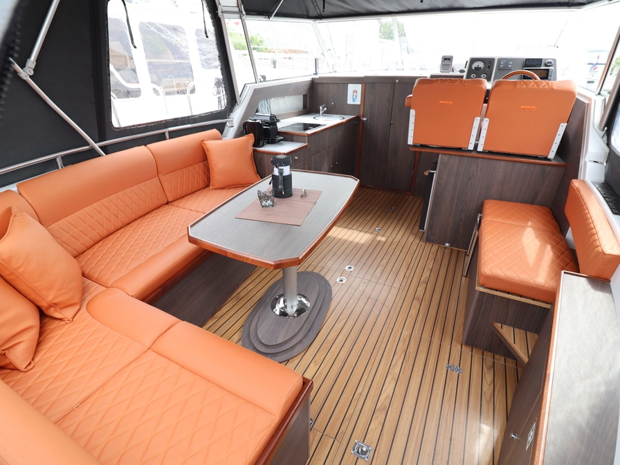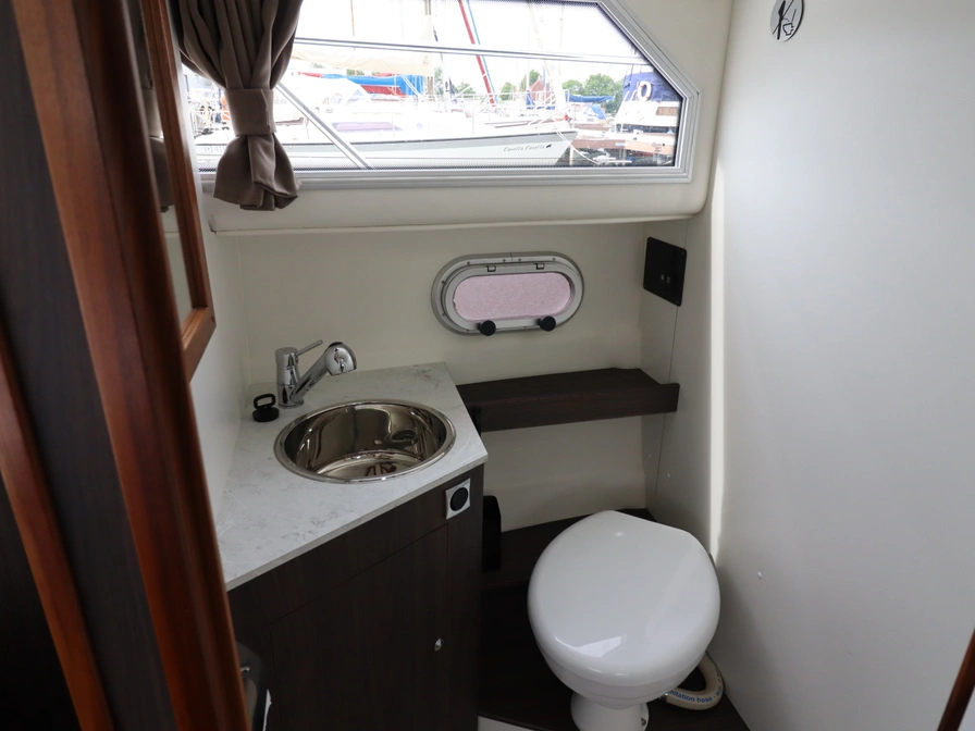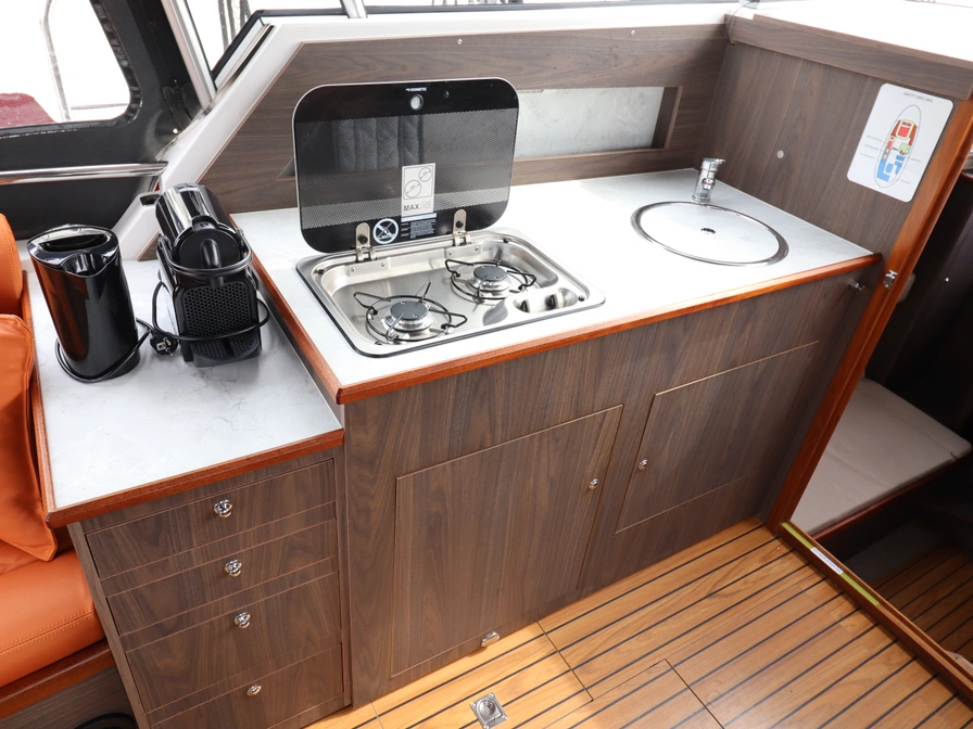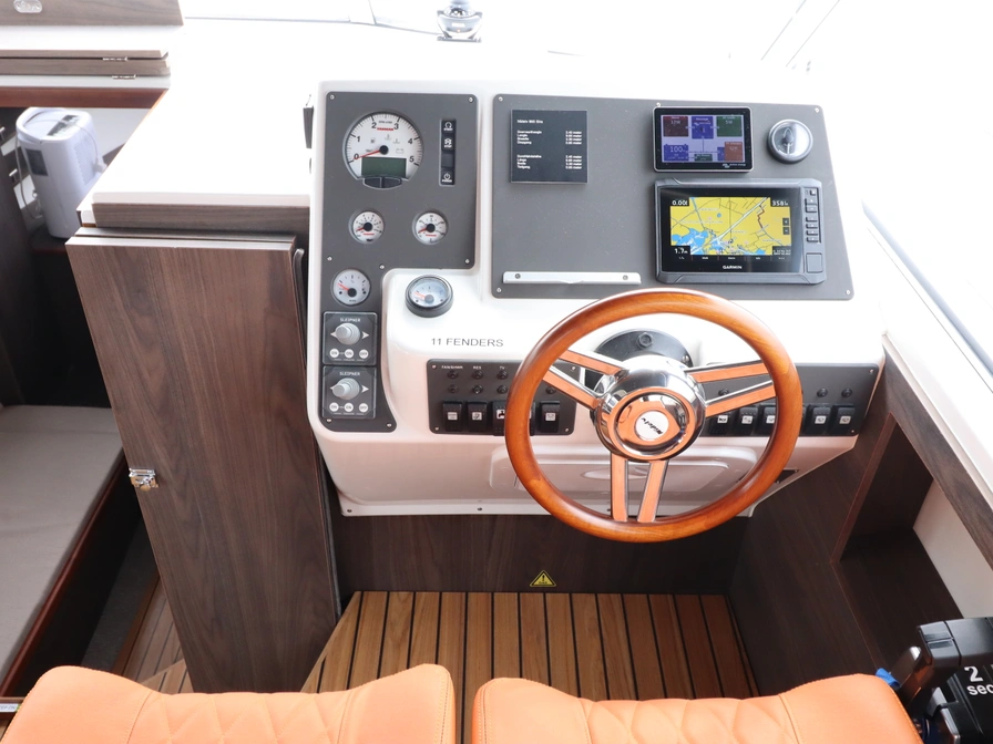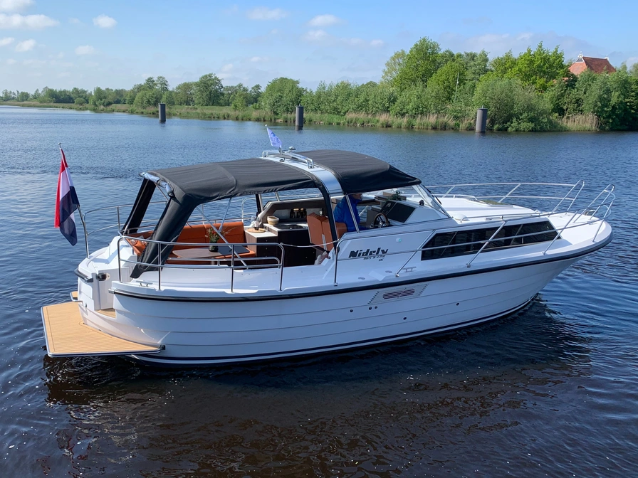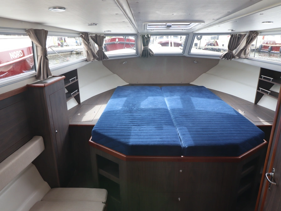 Die Nidelv 965 Sira ist ein brandneues (2025) modernes norwegisches Spitzgatter mit stilvollem holländischem Touch. Geeignet für 3 Personen. Diese Motoryacht mit offenem Cockpit ist perfekt für abenteuerlustige Wassersportler, die Komfort und Freiheit kombinieren möchten. Dank der breiten Gangborde mit Edelstahlgeländer und Haltegriffen am Kabinendach können Sie und Ihre Crew sich sicher und bequem auf dem Schiff bewegen. Sie betreten das geräumige offene Cockpit über die Gangway oder die Badeplattform mit Hecktür. Das Cockpit ist aufgeteilt in zwei gegenüberliegende, bequeme Sitzbereiche, eine praktische Pantry und einen übersichtlichen Steuerstand – alles auf einer Ebene. So haben Sie eine perfekte Rundumsicht und können entspannt das Wasser genießen. In der vorderen Kabine befindet sich die Eignerkabine mit einem geräumigen freistehenden Doppelbett, einem zusätzlichen Schlafsofa und einem eigenen Badezimmer mit elektrischer Toilette, Waschbecken und Handbrause. Das Nidelv 965 Sira ist clever und komfortabel ausgestattet und verfügt über viele durchdachte Details. Denken Sie an energieeffiziente LED-Beleuchtung, dimmbare Lampen in der Vorderkabine, luxuriöse Leselampen mit USB-Ladeanschluss, Soft-Close-Schubladen, Orientierungsbeleuchtung im Cockpit und zusätzlichen Stauraum – unter dem Bett und unter dem Cockpitboden. Sogar am Steuerstand finden Sie einen doppelten USB-Ladeanschluss. Bitte beachten: Sie haben noch keine Segelerfahrung? Dann ist eine Segeleinweisung zwingend erforderlich.