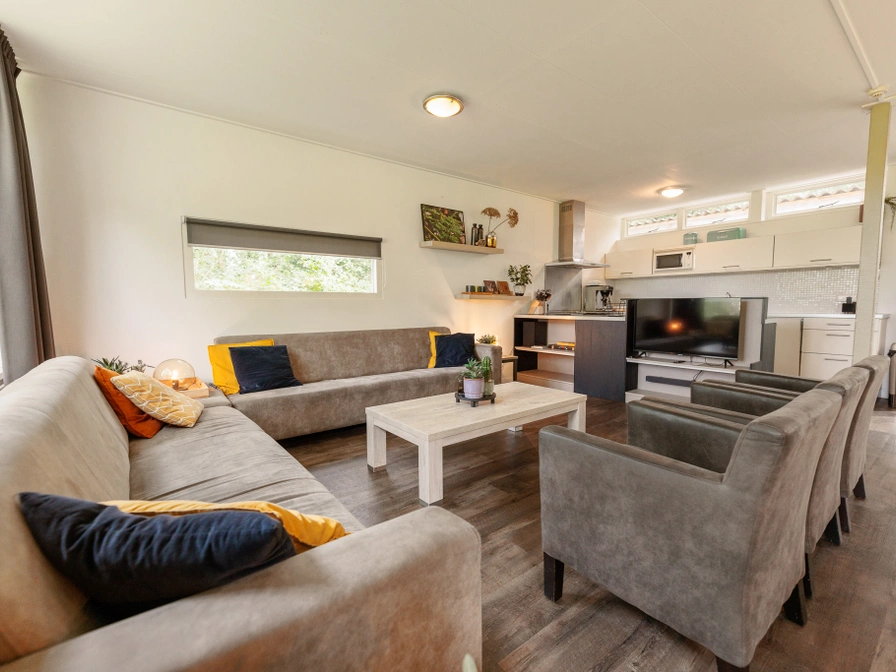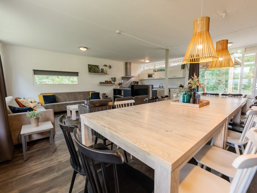 Diese Gruppenunterkunft liegt wunderschön mitten in der Natur auf einem kleinen Moor. Die Unterkunft befindet sich vollständig im Erdgeschoss und besteht aus einem langen Korridor, in dem sich die acht Schlafzimmer befinden. Jedes Schlafzimmer hat ein eigenes Badezimmer mit Dusche, WC und Waschbecken. Eines der Schlafzimmer ist behindertengerecht ausgestattet. Darüber hinaus verfügt jedes Schlafzimmer über einen Schreibtisch und einen Fernseher. Am Ende des Flurs befindet sich das geräumige Wohnzimmer mit Wohn- und Esszimmer und voll ausgestatteter Küche mit Backofen, Geschirrspüler und Kühlschrank. Das Wohnzimmer verfügt über eine großzügige Terrasse mit gemütlichen Sitzgelegenheiten.
