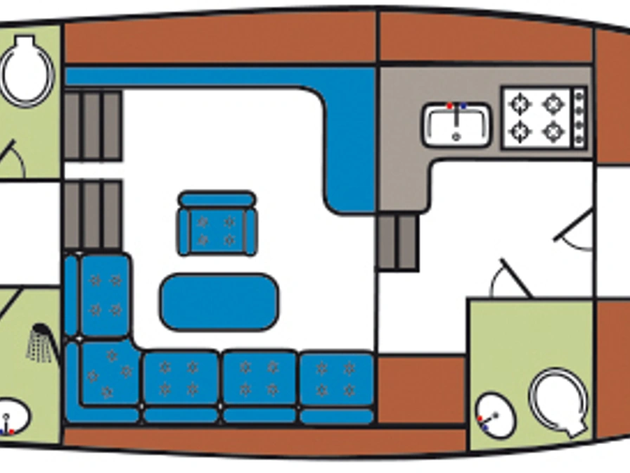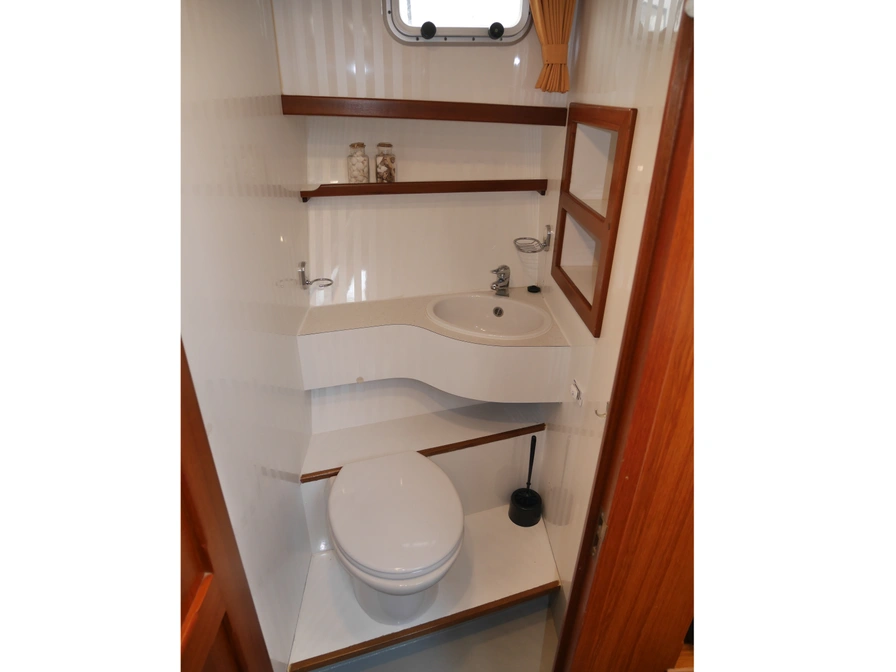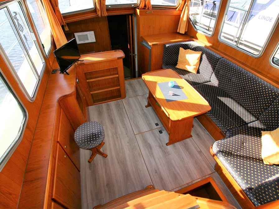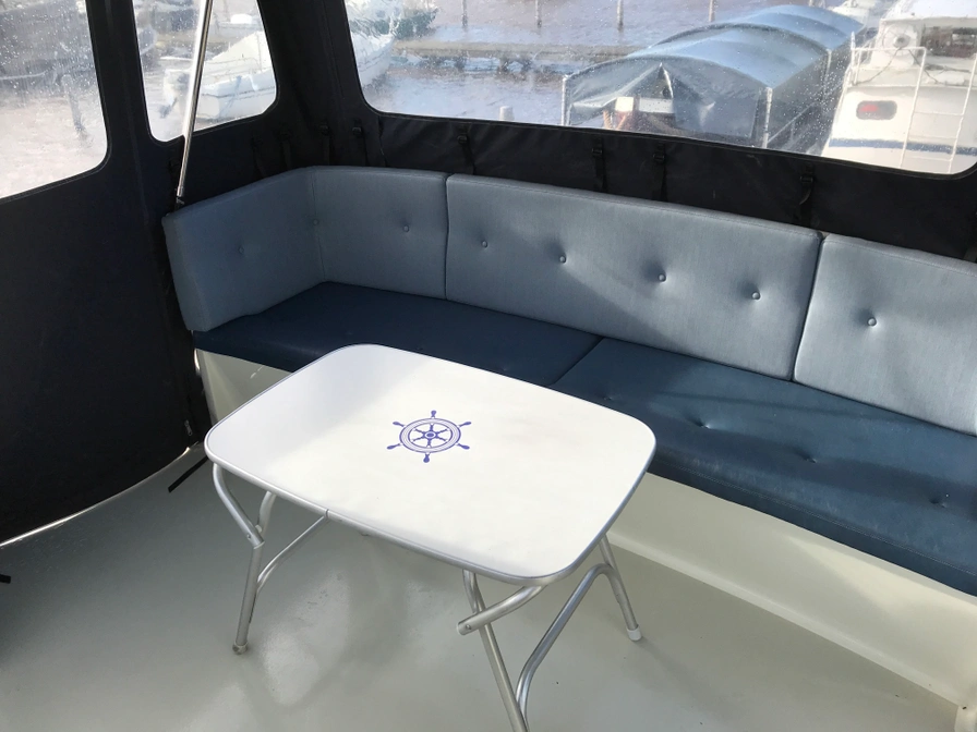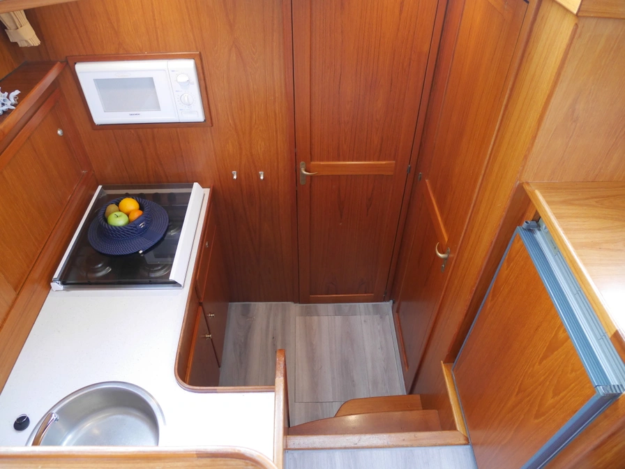 Diese wunderschöne Privateer 34 ist komplett ausgestattet und bietet viel Komfort an Bord für 4 Personen. Ihnen stehen zwei separate Schlafkabinen, zwei elektrische Toiletten, eine separate Dusche und eine feste Sitzbank auf dem Achterdeck mit einem geräumigen XL-Umbauzelt zur Verfügung. Dank Doppelverglasung, Heizung und LED-Innenbeleuchtung ist der Aufenthalt auch bei schlechtem Wetter angenehm. Layout: Der Salon verfügt über eine geräumige Sitzecke und Schrankwand und ist zur gut ausgestatteten Kombüse hin offen. Hier finden Sie einen 4-Flammen-Gasherd, Kühlschrank, Mikrowelle, Kaffeemaschine, Wasserkocher und ein komplettes Inventar für 4 Personen. Im Vorschiff befindet sich eine geschlossene Kabine mit einem V-Bett mit Lattenrost. Mit einem Zwischenteil lässt es sich ganz einfach in ein Doppelbett verwandeln. Außerdem gibt es eine elektrische Toilette mit Waschbecken. Die Achterkabine verfügt über ein halb freistehendes Doppelbett mit Lattenrost, einen zweiten Toilettenraum mit elektrischer Toilette und Waschbecken sowie eine separate Dusche. Draußen auf dem geräumigen Achterdeck können Sie sich über einen mittschiffs gelegenen Steuerstand, ein Solarpanel, eine feste Sitzbank, einen GPS-Kartenplotter, ein XL-Cabriozelt rundum und eine praktische Deckwaschpumpe freuen. Außerdem gibt es eine Badeplattform mit Badeleiter, leicht zugängliche Gangborde und ein umlaufendes Edelstahlgeländer. Dank Bug- und Heckstrahlruder ist das Manövrieren einfach. Sie haben noch keine Segelerfahrung? Dann ist eine Segeleinweisung zwingend erforderlich.