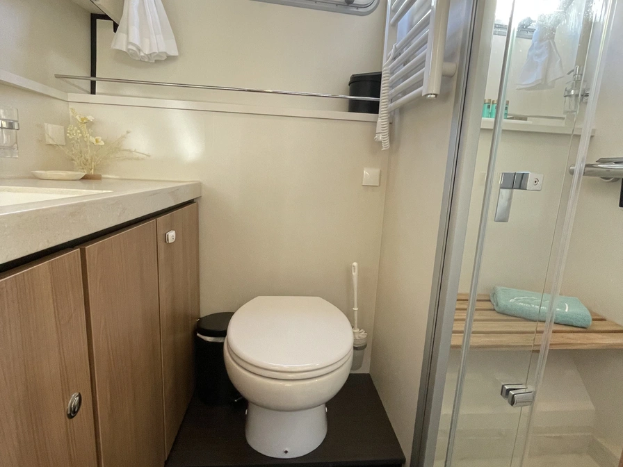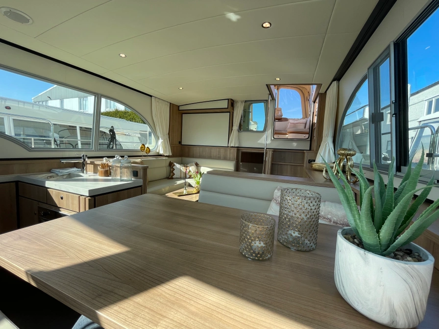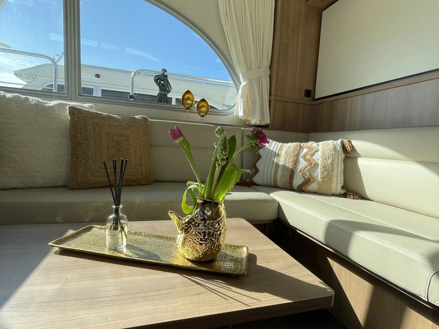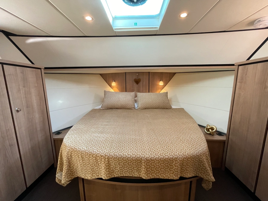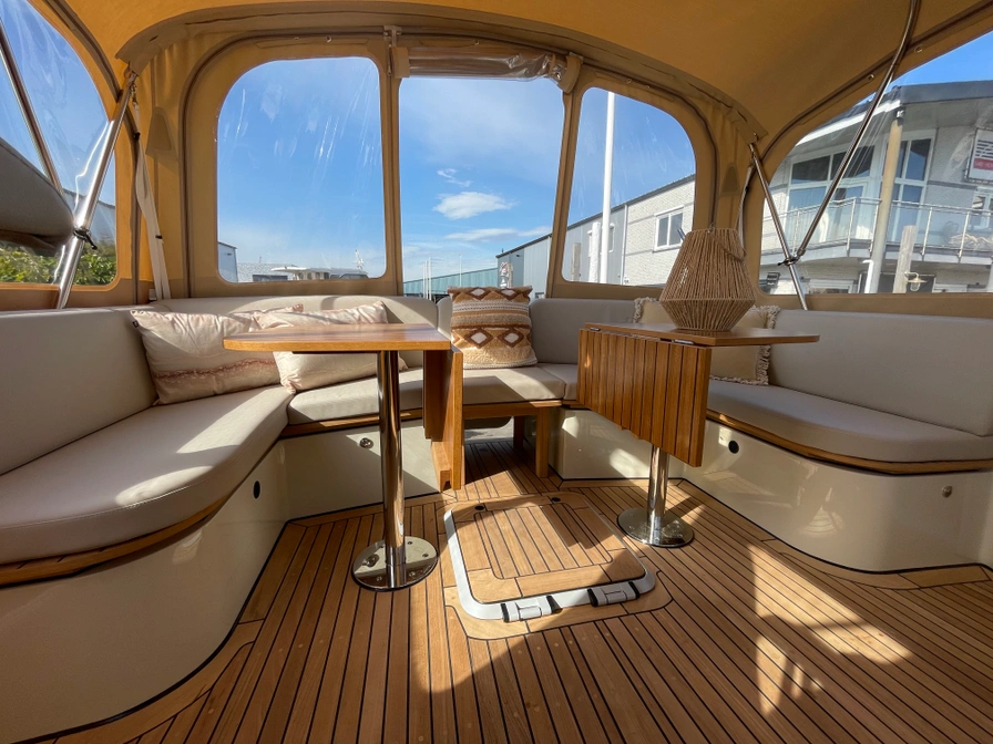Diese Sechs-Personen-Yacht ist eine wunderbare Yacht für die Erkundung der friesischen Gewässer. An Bord gibt es sechs Kabinen (Schiffsstahl für Schlafzimmer). Zwei davon verfügen über ein Doppelbett, Bad und WC. Das dritte Schlafzimmer verfügt über zwei Einzelbetten und viel Platz im Kleiderschrank. Diese Yacht ist eine robuste Yacht und mit frischen und leichten Materialien ausgestattet. Es gibt einen Wohnbereich, einen Essbereich und eine gut ausgestattete Küche mit einer Nespresso-Maschine. Der Fernseher im Salon verfügt über Apple TV. Das Achterdeck besteht aus Teakholz und bietet auf der festen Sitzbank mit bequemen Kissen ausreichend Sitzgelegenheiten. Das Achterdeck kann mit dem Cabrio-Zelt komplett geschlossen oder geöffnet werden. Sie können auch das Achterdeck beheizen! Die Yachten sind sowohl mit Bug- als auch Heckstrahlrudern ausgestattet.