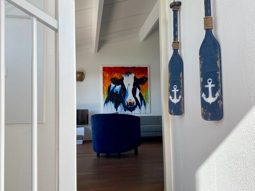 Dieses geräumige Schiffshaus ist für 6 Personen geeignet. Das Haus verfügt über 3 Schlafzimmer. Es gibt zwei Badezimmer, eines im Erdgeschoss und eines im ersten Stock. Die Toiletten sind separat. Das Wohnzimmer ist komfortabel eingerichtet und es gibt eine schöne Wohnküche mit allen Annehmlichkeiten. Es gibt eine Dachterrasse mit freiem Blick sowohl auf der Vorder- als auch auf der Rückseite und unter dem Haus befindet sich ein Schiffshaus. Hier können Sie Ihren Aufenthalt so richtig genießen.