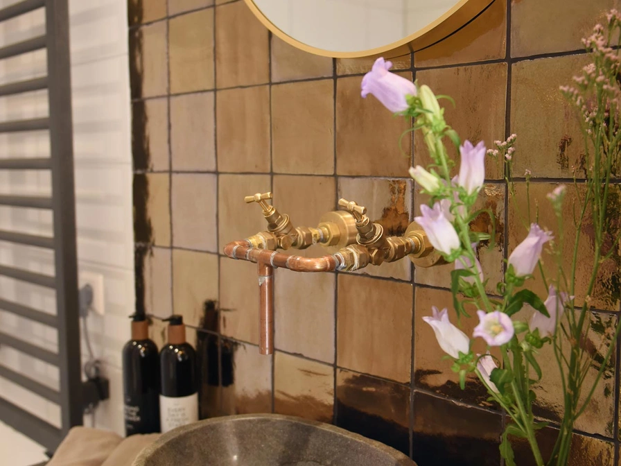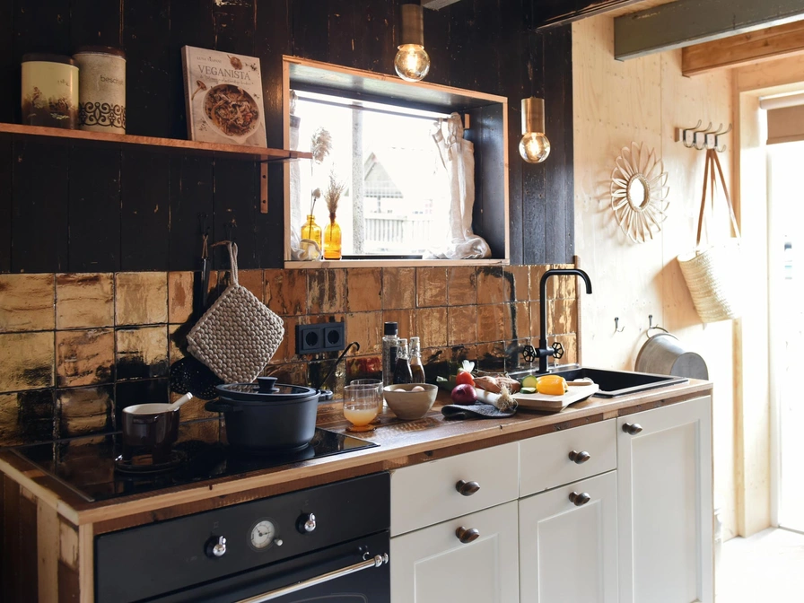 Kleines gemütliches Haus neben einem nostalgischen Bauernhof. Das Haus ist modern und sehr geschmackvoll eingerichtet. Es ist für zwei bis vier Personen geeignet. Durch den Eingang betreten Sie die offene Küche, die unter anderem mit einer Nespresso, einem Kühlschrank und einem Herd komplett ausgestattet ist. Das Wohnzimmer verfügt über eine gemütliche Sitzecke und ein schönes Boxbett für die Kinder. Das Badezimmer verfügt über eine Dusche und ein Waschbecken. Das Haus verfügt über einen Dachboden mit einem Doppelbett. Draußen können Sie die Veranda mit einem Whirlpool daneben nutzen. Ist das nicht der ultimative Genuss? Sie können den Whirlpool nutzen. Es gibt einen Elektrobootverleih und die Kinder werden auf dem Klettergerüst jede Menge Spaß haben. Auf der Wiese gibt es Ziegen, Hühner für frische Eier sowie Kühe und Pferde und im hauseigenen Hofladen können Sie frische Produkte kaufen. In der Bauernscheune finden Sie ein gemütliches Wohnzimmer. Wer hätte gedacht, dass Heuballen so stilvoll sein können? Die sanften Glühbirnen hängen verspielt im Raum. Die Bauerntische eignen sich perfekt für einen Abend mit Gourmetessen oder einer Partie Rummikub. Das Wohnzimmer ist ein Ort des Zusammenseins, aber auch der Rückzug und der Ruhe, die der Altbau ausstrahlt. Manchmal trinken sie eine Tasse Kaffee und Kinder spielen in der Kinderküche. Zu anderen Zeiten ist es ruhig und Sie können einen entspannten Nachmittag in einem der Vintage-Stühle verbringen.