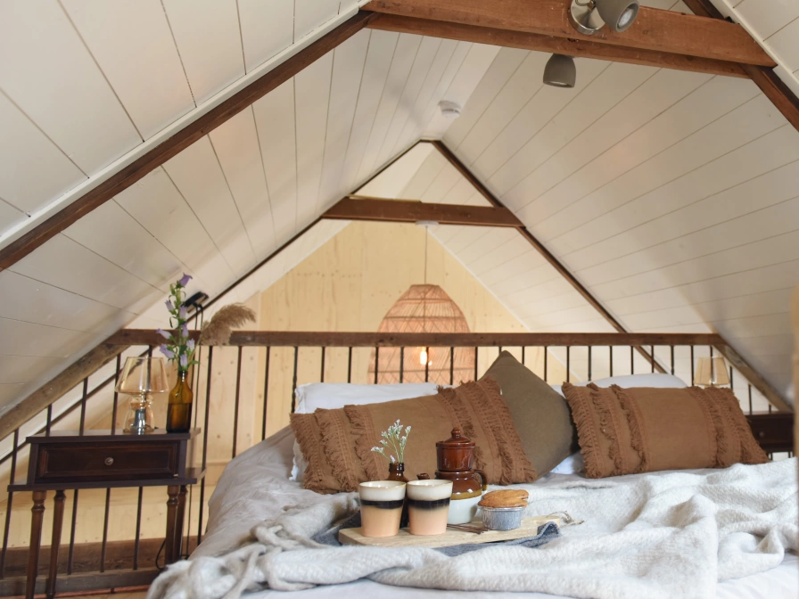 - Das Schlafzimmer/Loft befindet sich im ersten Stock und ist über eine Treppe erreichbar. - Bettdecken, Kissen, Bettwäsche, Handtücher, Duschgel und Küchentücher sind vorhanden. - Die Betten sind bei der Ankunft bezogen.