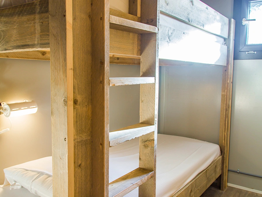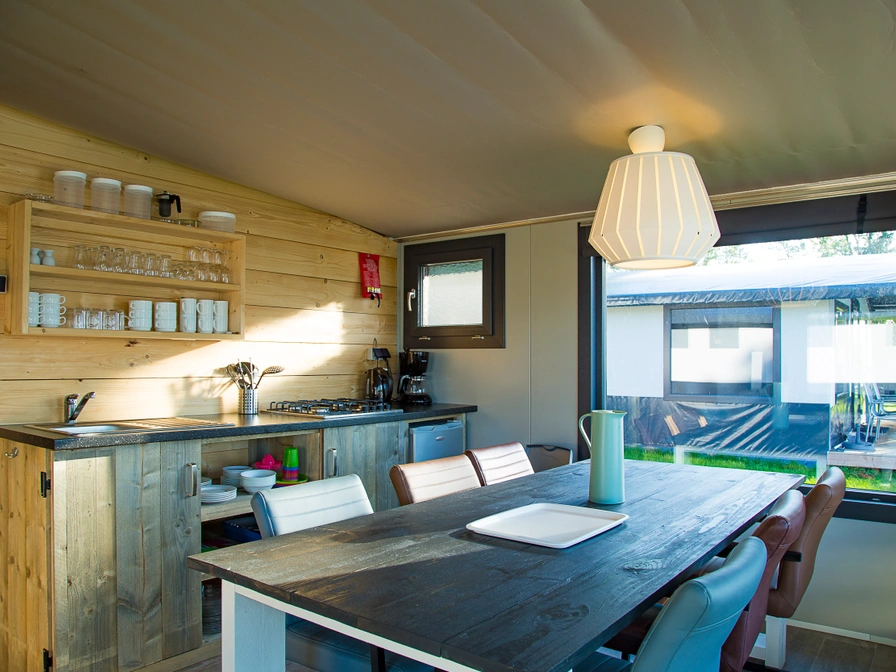 Die geräumige und gemütliche Zeltvilla bietet Platz für sechs Personen und ist komplett möbliert. Jede Zeltvilla verfügt über eine offene Küche. Es gibt drei Schlafzimmer. Ein Schlafzimmer hat ein Doppelbett, ein weiteres ein Etagenbett und das dritte zwei Einzelbetten. Das Badezimmer ist mit Dusche, WC und Waschbecken ausgestattet. Draußen können Sie das schöne Wetter auf der Veranda genießen. Jede Zeltvilla verfügt über eine Terrasse mit Gartenmöbeln. Um die Zeltvilla zu buchen, wenden Sie sich bitte direkt an den Eigentümer.
