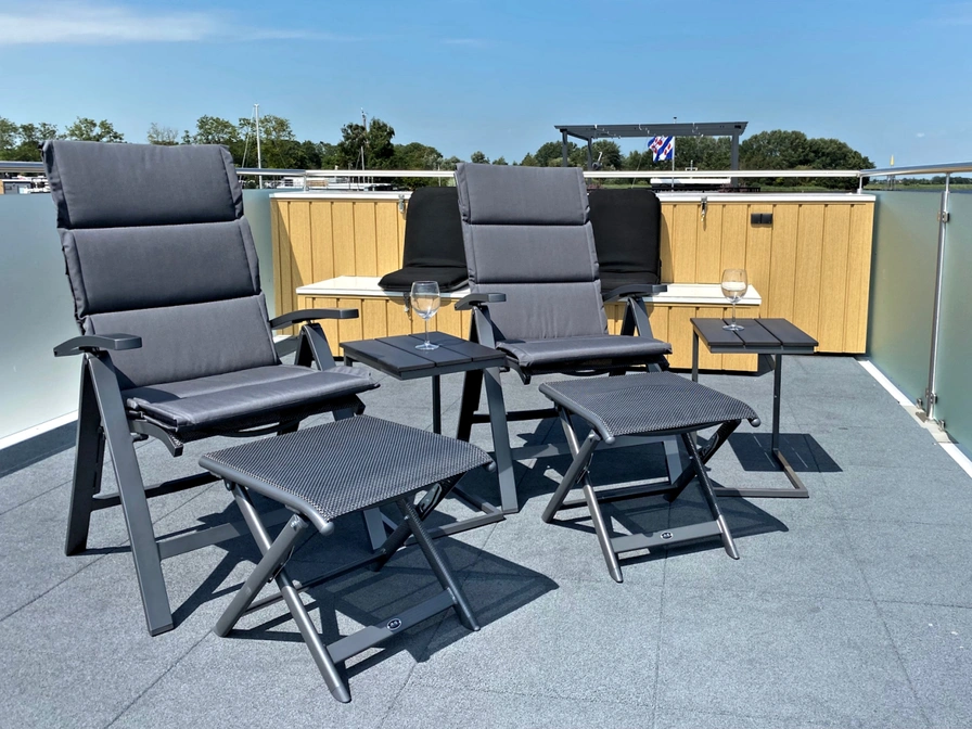 Dieses luxuriöse Hausboot (nicht segelnd) wird an einem erstklassigen Standort vermietet! Wunderbar komfortabel und bietet eine wunderschöne freie Aussicht, direkt am berühmtesten See Frieslands. Vom modernen Wohnzimmer aus erreichen Sie die Dachterrasse (von innen) über eine leicht begehbare Treppe mit Handlauf, von wo aus Sie einen spektakulären Blick über das Sneekermeer haben! Es gibt eine voll ausgestattete Küche mit einer gemütlichen Sitzecke am Fenster. Auf dem Vordeck gibt es einen bequemen Sitzplatz mit Tisch. An Bord haben Sie einen (geräumigen) gepflegten Dusch-WC-Raum. Das Hauptschlafzimmer mit Doppelbett ist geräumig und bietet neben Blick auf das Wasser auch Zugang zum Hinterdeck durch die Glasschiebetür. Sie haben viel Stauraum und an Bord der Spirou gibt es ein 2. Schlafzimmer mit einem Etagenbett für 2 zusätzliche Gäste. Kurz gesagt, ein äußerst gepflegtes (neues) Hausboot auf dem Sneekermeer, wo Sie zu einem angenehmen Aufenthalt herzlich willkommen sind.