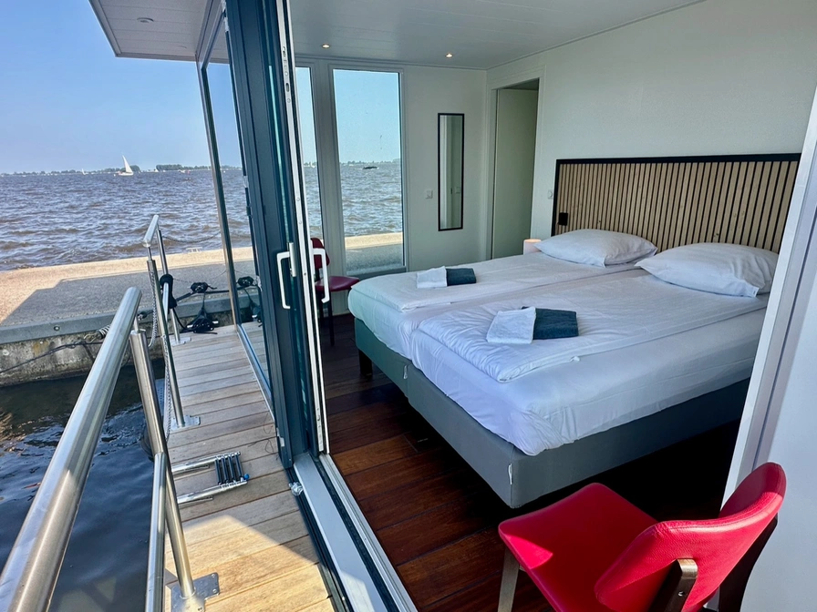 Diese Huisboten (Hausboote) liegen auf offenem Wasser im Huisboothaven Waterrijck Sneekermeer (in der Nähe des Beach Club Sneek). Nur 10 Autominuten von der berühmten Stadt Snits oder Sneek entfernt! Sie genießen einen wirklich phänomenalen freien Blick auf einen der berühmtesten friesischen Seen. Liegt an schönen Radwegen. Fahrräder können Sie im nahegelegenen RCN-Ferienpark De Potten mieten. Möchten Sie selbst ein Boot mieten oder haben Sie keine Lust, an Bord zu kochen? Anschließend können Sie im Huisboothaven im neuen Pavillon des Beach Club Sneek etwas trinken oder essen. Lust auf mehr Abenteuer? Besuchen Sie dann die berühmte Startinsel (5 Gehminuten mit der Fähre) oder fahren Sie zum Sneek Beach. Purer Spaß für Groß und Klein ist in wenigen Gehminuten erreichbar. Lassen Sie sich von der Waterskibaan, der gemütlichen Gastronomie, dem neuesten Aquapark und vielem mehr überraschen.