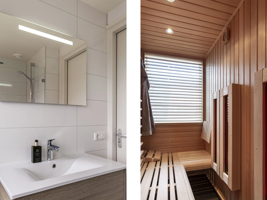 Diese wunderschöne reetgedeckte Villa ist für 16 Personen geeignet. Es gibt ein geräumiges Wohnzimmer mit zwei gemütlichen Sitzecken und einem langen Esstisch, an dem Sie ausgiebig speisen können. Außerdem gibt es zwei Küchen. Sie haben also 2 Kühlschränke, 2x einen Geschirrspüler und 2x ein Induktionskochfeld und einen Backofen! Insgesamt gibt es 8 Schlafzimmer, von denen sich zwei im Erdgeschoss befinden. Diese beiden Schlafzimmer haben ein eigenes Badezimmer mit Dusche, WC und Waschbecken. Die anderen Schlafzimmer befinden sich im ersten Stock, ebenso wie zwei Badezimmer mit Dusche, WC und Waschbecken. Außerdem gibt es im ersten Stock noch zwei extra Toiletten, sowie zwei Saunen! Um das Haus herum befindet sich ein großer Garten mit verschiedenen Sitzgelegenheiten. Auf beiden Seiten des Hauses gibt es eine teilweise überdachte Sitzecke mit bequemen Sofas und auf der langen Seite des Hauses, mit einem schönen Blick über das Wasser, gibt es zwei lange Tische mit Bänken, perfekt um mit Ihrer Gruppe draußen zu essen das Wetter ist schön.