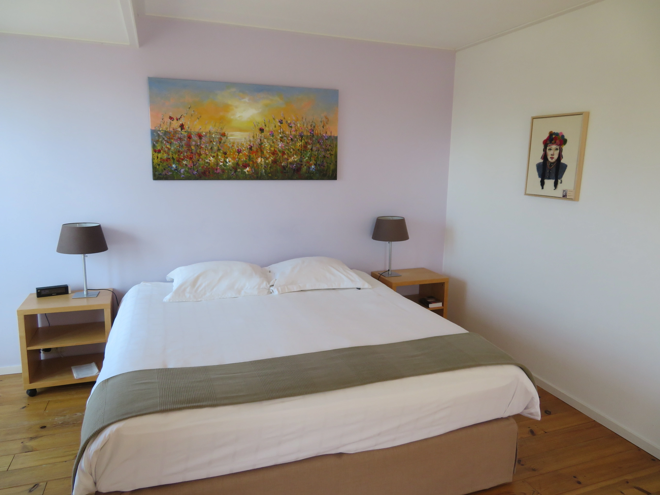 Das Sering-Zimmer ist geräumig und ruhig mit violetten Akzenten eingerichtet. Sie schlafen in einem komfortablen Bett und können in der gemütlichen Sitzecke lesen oder einfach entspannen. Das Zimmer wirkt offen und einladend und bietet viel Platz zum Verweilen. Ein Zimmer mit zwei Einzelbetten ist auf Anfrage verfügbar.