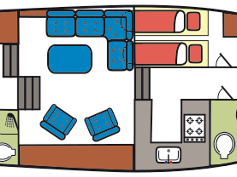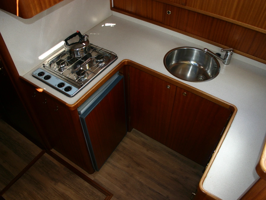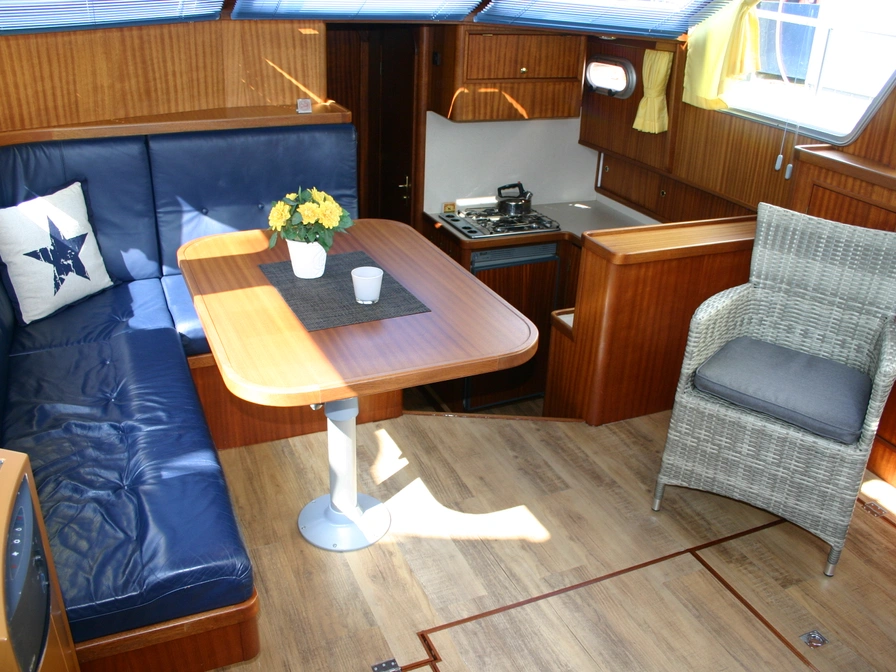 Diese robuste und angenehme Motoryacht bietet viel Wohn- und Stauraum und ist ideal für eine größere Familie. Das Schiff hat eine kompakte Größe, bietet aber dennoch Schlafplätze für 6 Personen. Layout: Im Vorschiff finden Sie zwei geräumige Einzelbetten und ein Badezimmer mit Waschbecken und elektrischer Toilette. Gegenüber der Küche befindet sich ein zusätzliches Schlafzimmer mit zwei Einzelbetten. Die Küche ist komplett für 6 Personen ausgestattet und verfügt über einen 4-Flammen-Gasherd, Kühlschrank und Kaffeemaschine. Die Lounge ist geschmackvoll mit einer L-förmigen Sitzecke mit Lederkissen und zwei separaten Schalensitzen eingerichtet. Die geräumige Achterkabine verfügt über ein großes Doppelbett, eine zweite elektrische Toilette, ein Waschbecken und eine separate Duschkabine. Auch hier ist ausreichend Stauraum vorhanden. Auf dem Sonnendeck erwarten Sie ein XL-Cabriodach, ein Steuerstand, ein Solarpanel und eine Badeleiter für ein erfrischendes Bad. Bitte beachten: Sie haben noch keine Segelerfahrung? Dann ist eine Segeleinweisung zwingend erforderlich.