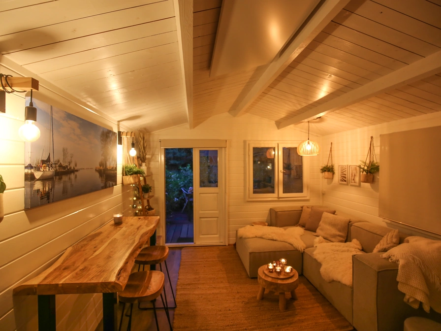 Eine attraktive, komplett renovierte (2023) Unterkunft für 2 Personen, die mit einer persönlichen, warmen Note und Stil eingerichtet ist. Im Inneren finden Sie ein schönes 3-Personen-Loungesofa mit Hocker, selbstgehäkelte Plaids, stimmungsvolle Beleuchtung, Kerzenplateaus und einen schönen Bartisch aus Baumstamm mit Hockern. Die voll ausgestattete Küche ist mit einem 2-Flammen-Gasherd, einer Kühl-/Gefrierkombination, einem Backofen, einem Wasserkocher, einer Kaffeeecke mit Nespresso-Maschine und attraktiven Kochutensilien, Geschirr und Gläsern ausgestattet. Das Ferienhaus verfügt über ein neues Badezimmer mit Duschkabine, Toilette, Waschbecken und Schrank. Die ursprünglichen zwei kleinen Schlafzimmer wurden in ein geräumiges, romantisches und wunderschönes Schlafzimmer umgewandelt, mit einem bequemen Taschenfederkern-Boxspringbett, Kissen und herrlicher Bettwäsche aus natürlicher Baumwolle. Auf der Veranda steht ein geräumiger Esstisch für 4 Personen und im Garten finden Sie eine bequeme Gerüstholzbank und 2 gemütliche Strandkörbe. Zusje van Boppe liegt sehr ruhig an einem Sackgassenweg, 200 Meter vom kleinen Yachthafen und Badestrand am Fluessen entfernt. Ein wunderbares Paradies für Wassersportler, Ruhesuchende, Radfahrer, Wanderer und Liebhaber von 11 friesischen Städten und Dörfern.
