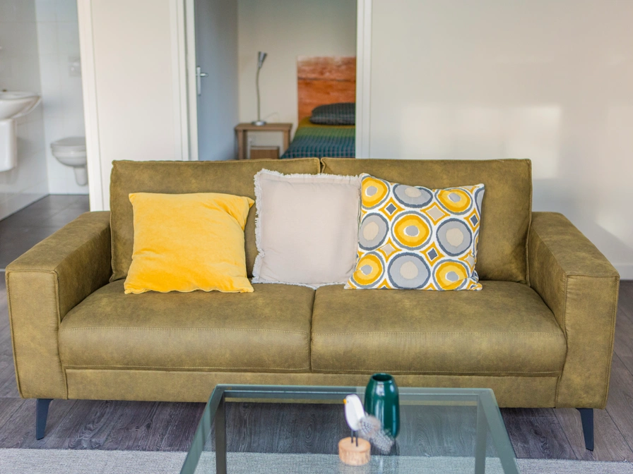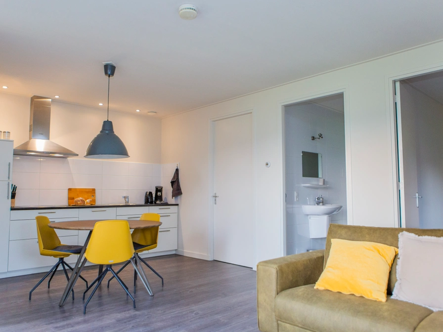 This comfortable apartment is located in a farmhouse on a small-scale campsite with a panoramic view over the countryside towards the Gaasterland forests. The apartment is fully equipped and furnished for four people. Through the entrance you enter the cozy living room with open kitchen. The living room has French doors to the terrace and from the comfortable sofa you have a panoramic view over the countryside. The neat kitchen includes a dishwasher, microwave, refrigerator, Senseo and kettle. There is a round dining area where you can dine comfortably. The apartment has two bedrooms, both with two single beds. The bathroom has a shower, toilet and sink. In the outbuilding is a washing machine and freezer. There is also a spacious wood-fired sauna for 2-6 people on the campsite (book in advance). Would you like to relax and unwind? That should definitely work here!
