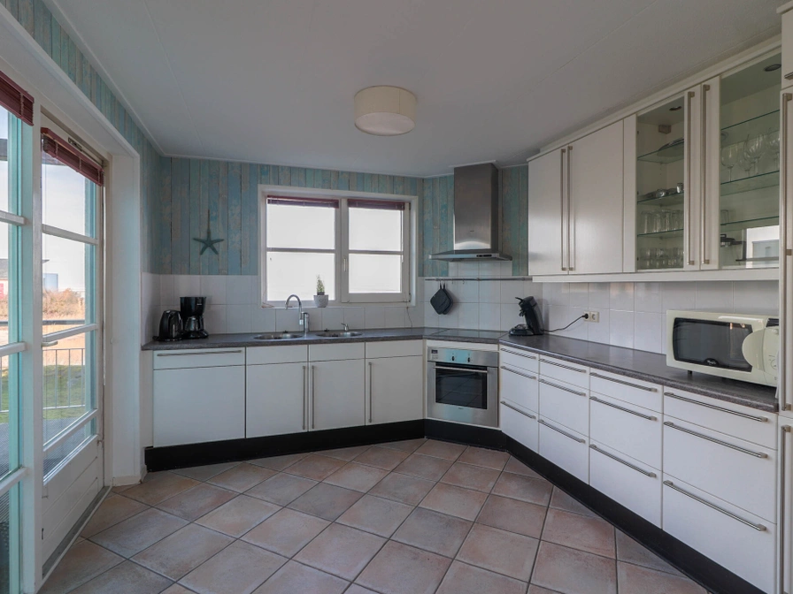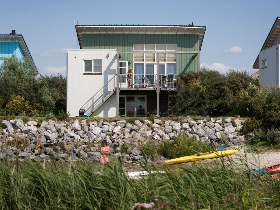 This beach villa is centrally located in the holiday park on its own private beach on the IJsselmeer. The house is suitable for six people, the bedrooms of which are located on the ground floor. There is a spacious bathroom with shower, toilet and sink and there is a second toilet on the first floor. The first floor is the living floor and offers a magnificent view over the IJsselmeer. The living room is connected to the terrace through French doors. The kitchen is open and fully equipped, including a microwave and toaster.