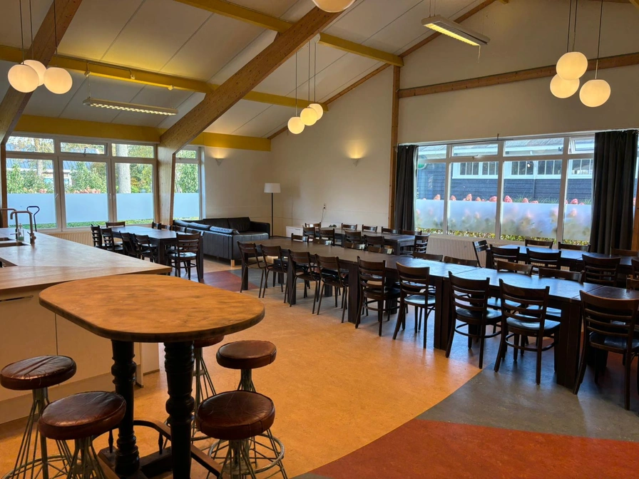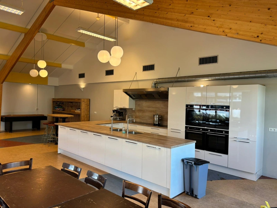 De Kajuit is a group accommodation for 42 people, and we rent it out on a self-catering basis. The large communal area features a luxury kitchen with all the necessary amenities, including two combination ovens, two 6-burner induction cooktops, and two dishwashers. The communal area is also furnished with tables, chairs, and benches. If you'd like to enjoy sailing or slooping, you can do so from this location. We'll moor your boats for you in the harbor next to the accommodation, and you can get out on the water at any time of day.