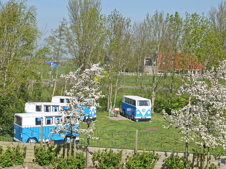 You can spend the night in special accommodations at a versatile location near Workum. In the farm you will find a number of B&B rooms with a beautiful view and comfortable beds. In the yard behind the farm is not only a camping site, but also various accommodations. For example, you can spend the night in a VW bus cabin, hiker's cabin, gypsy wagon or retro caravan. This way there is always an accommodation to your taste or wish. Whatever accommodation you stay in, the sanitary facilities are always close by and have been completely (sustainably) renovated in 2022. You will also find a washing machine and dryer in the covered outdoor kitchen. The terrain is open and green and you can practice bombs in the ecological swimming pool! Around the pool is a wide jetty where you have plenty of space to relax or sunbathe. A delicious Frysk breakfast is served every morning and in the evening you can order fresh pizzas from the cozy canteen. Every Saturday evening there is a large fire next to the canteen for grilling and chilling.