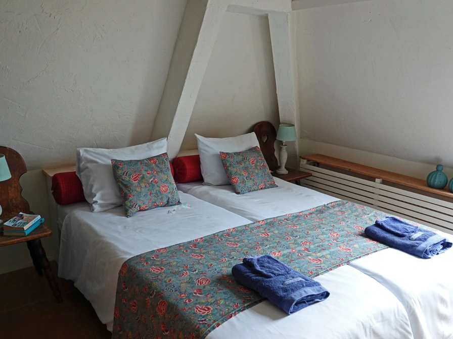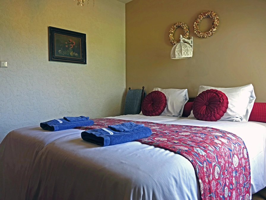 These Bed & Breakfast budget rooms have two single beds. Each farm room is decorated with beautiful details in different atmospheres. The rooms are 9 m2 to 12 m2 in size and are equipped with a closet and a seat. The authentic Hindelooper fabrics are also reflected in the pillows and bedspreads in these rooms. Showers and toilets in the hallway are for shared use.