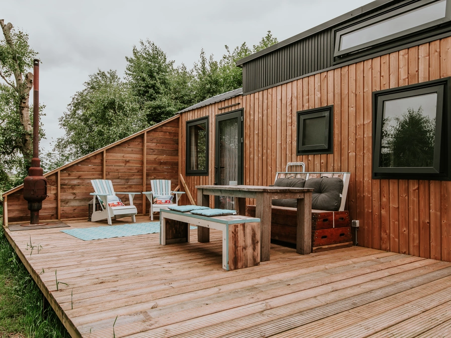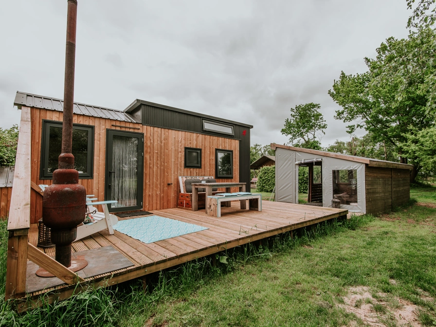'Lyts Hûs' is a cozy tiny house. This place is suitable for 2 adults and 2 children. It has a double bed and two single beds in the cozy sleeping loft. There is a fully equipped kitchen and a cozy dining area where you can all enjoy breakfast together. There is also a shower and a separate toilet. Lyts Hûs has a lot of privacy where you can enjoy the sun and look out over the Frisian countryside. There is also a beautiful covered veranda. Rent the wood-fired hot tub or barrel sauna for an evening.