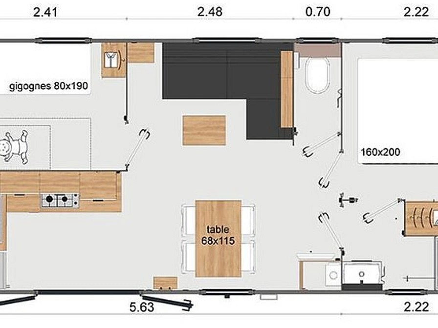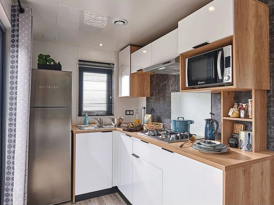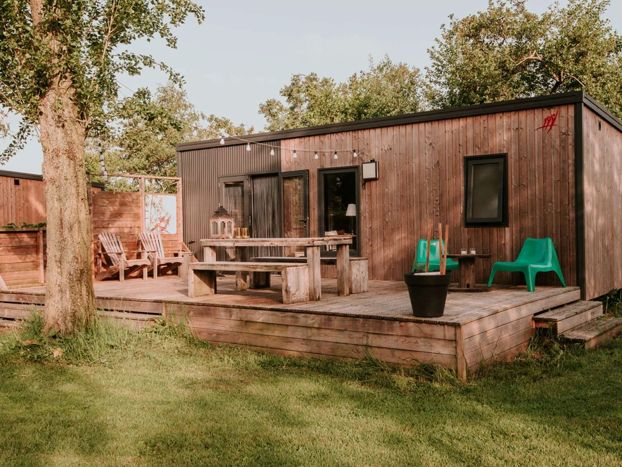 'The Talking House of Bor de Wolf' is a cozy tiny house with all amenities. The cottage is suitable for two adults and two children. There is a double bed, two single beds, a good shower, separate toilet and a fully equipped kitchen. The Praathuis is also equipped with heating, so you don't have to worry about it getting cold. There is also a cozy sitting and dining area and a beautiful veranda outside where you can enjoy the sun. Perfect if you want to go camping with a homely feeling.
