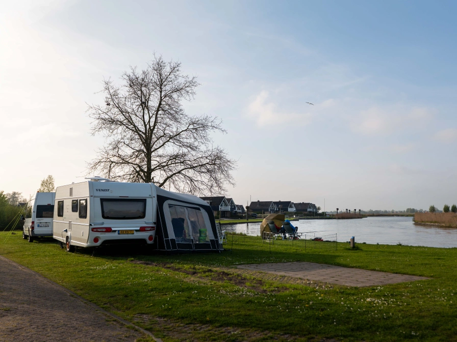 Enjoy a wonderful camping holiday in a beautiful location! From the partially paved pitches by the water, you'll have a magnificent view of the waterway and the meadows beyond. On sunny days, you'll enjoy watching the boats sail by. This waterway connects Heegermeer and Slotermeer lakes. The pitches are partially paved, making them suitable for campervans. The restrooms are located nearby, and you can use the showers and hot water there free of charge.