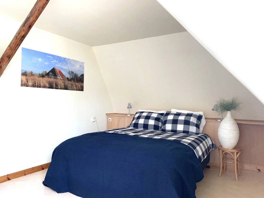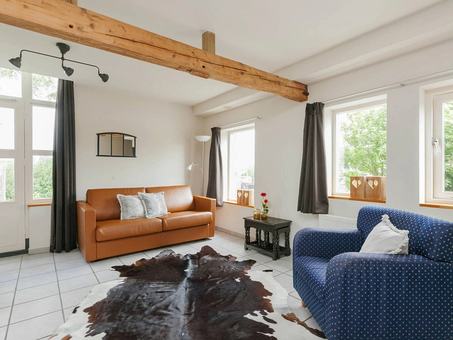 This cozy house is suitable for 5 to 7 people. There is a large living and dining area where the kitchen is located. This kitchen is fully equipped, with a gas stove, refrigerator and dishwasher. The house is located in a part of a former farm and is located on the water, so you have a beautiful view! On the first floor there are two bedrooms (including 1 box bed), as well as a bathroom with shower and toilet. Additional guests can sleep on the sofa bed in the living room. In addition to the bathroom on the first floor, there is an extra toilet on the ground floor.