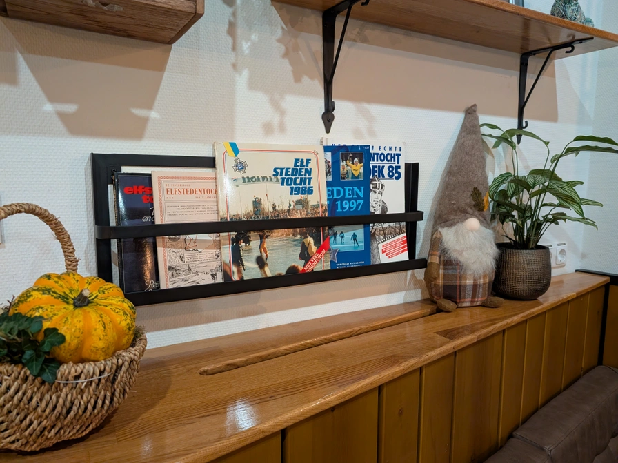 The 11Stedenhuis has five rooms. During their stay, guests can use the communal living room, Trochrinner: a charming space with a fireplace, a large round seating area, and a cozy tiered table. It's an ideal place to gather, play a game, or simply relax. The 11Stedenhuis is furnished with elements from Frisian folk art and decorated with objects and school posters that recall its former function: the former De Witakker primary school. De Witakker is situated in the wooded area of Rijs, in Gaasterland. It's a varied, rolling landscape with forests and hills. The location is close to the Rijsterbos forest, perfect for a lovely walk, and the IJsselmeer coast. Restaurants are within walking distance in the surrounding area.